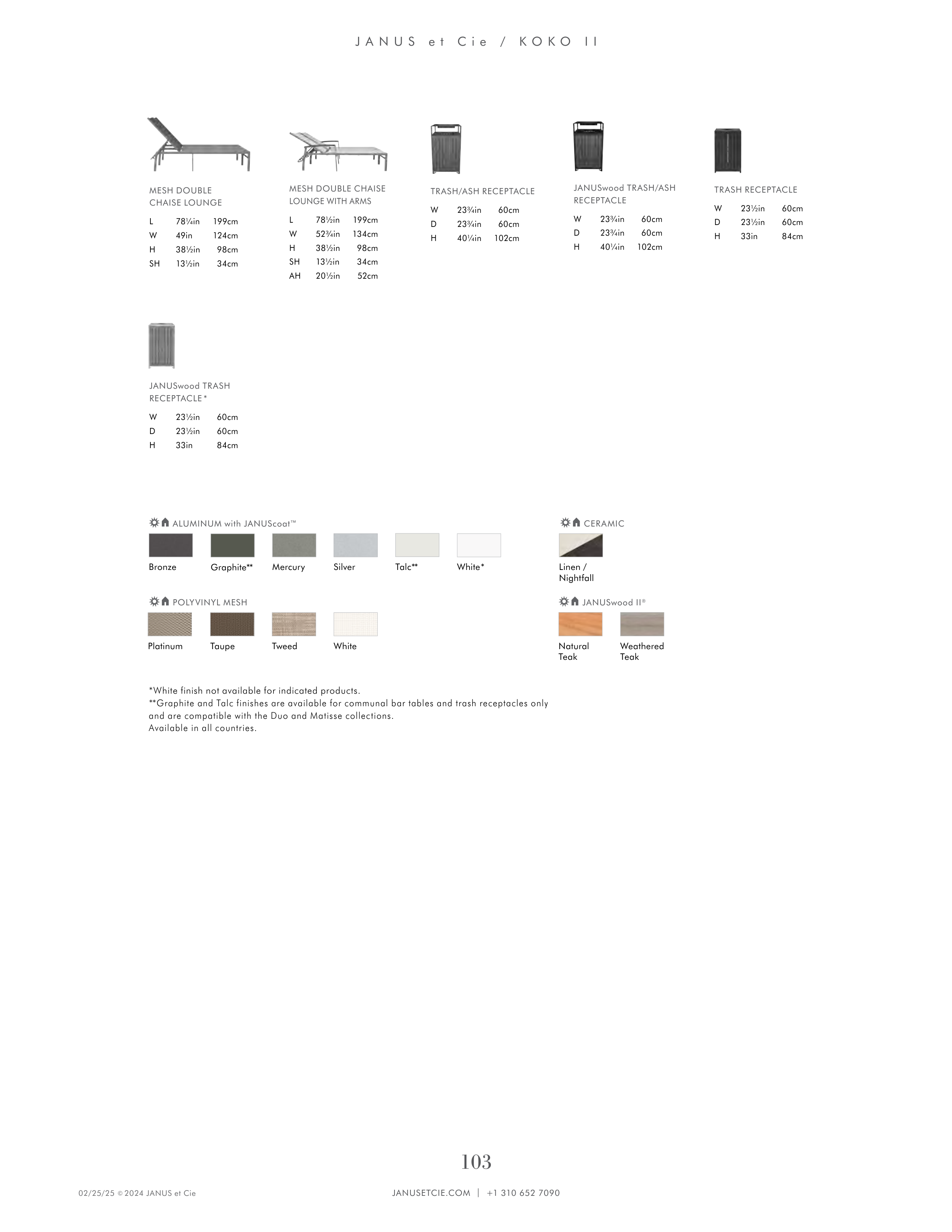 **Graphite and Talc finishes are available for communal bar tables and trash receptacles only
