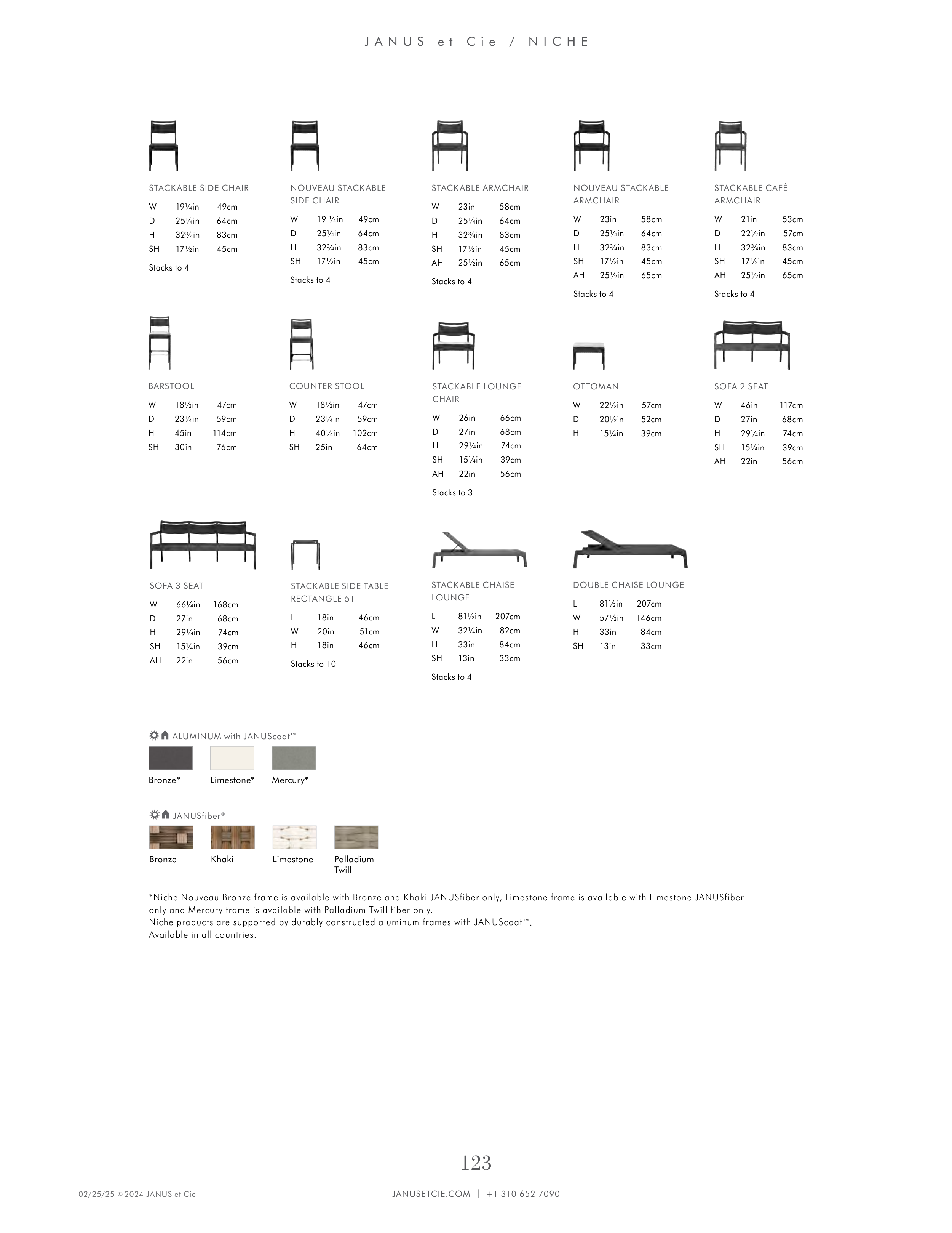 *Niche Nouveau Bronze frame is available with Bronze and Khaki JANUSfiber only, Limestone frame is available with Limestone JANUSfiber