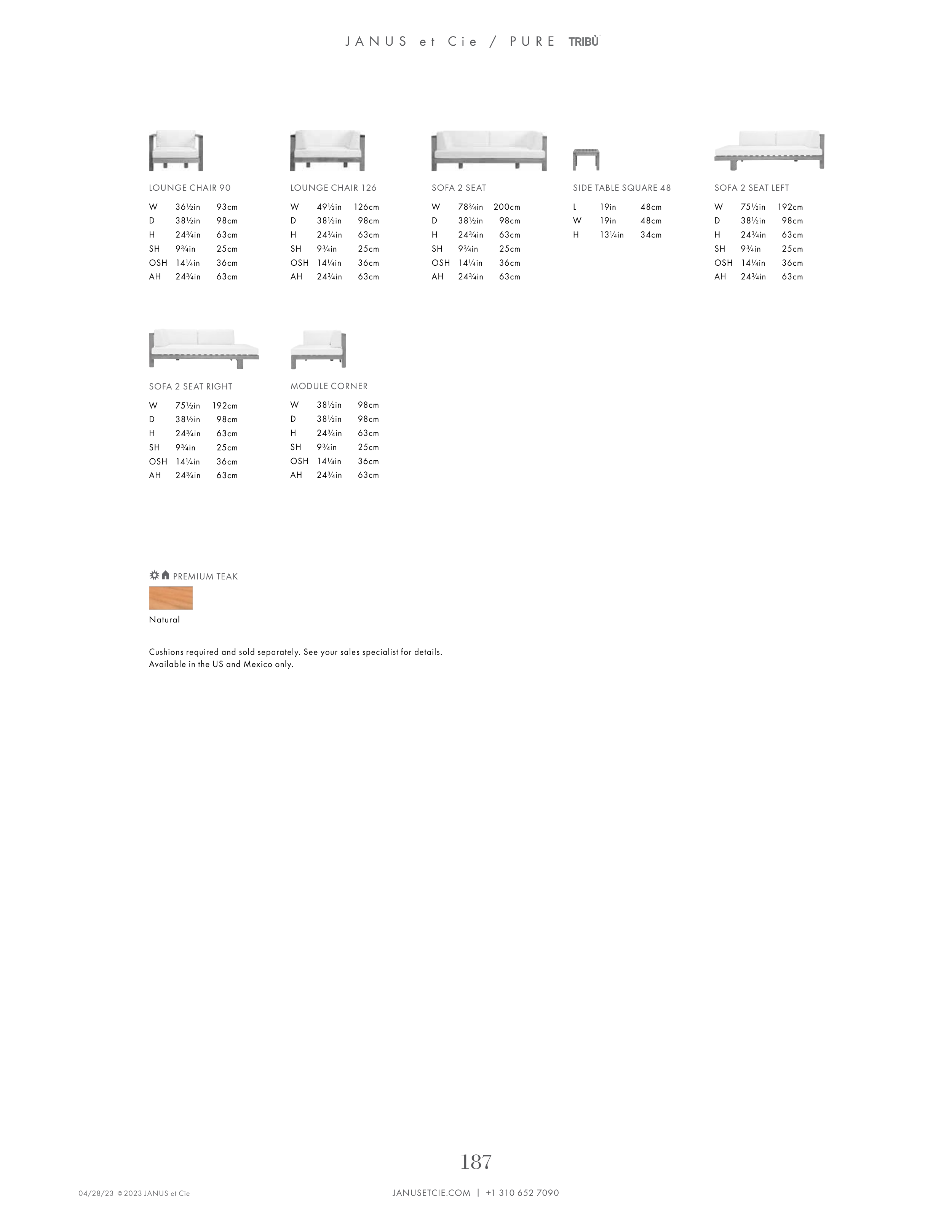 Cushions required and sold separately. See your sales specialist for details.