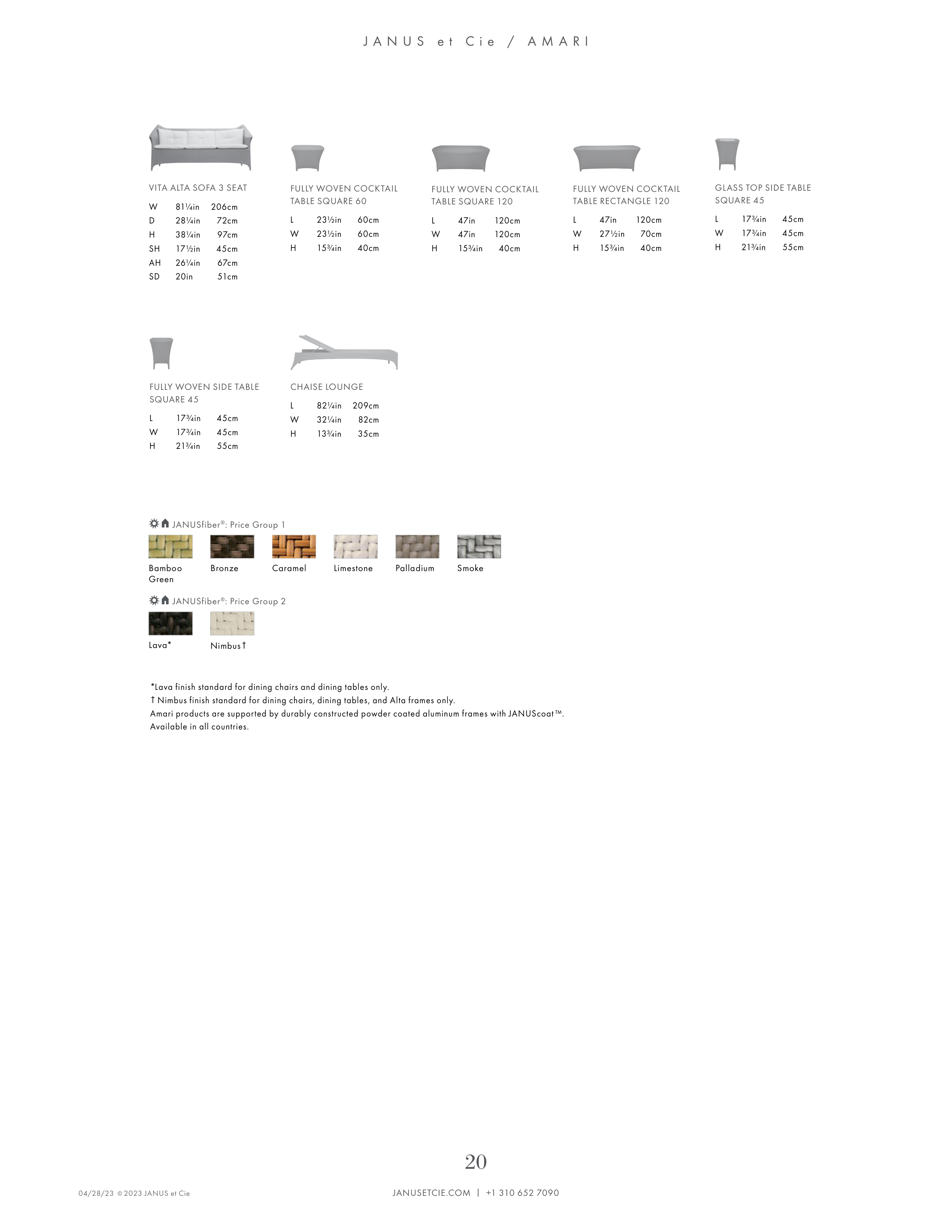 Amari products are supported by durably constructed powder coated aluminum frames with JANUScoat ™.