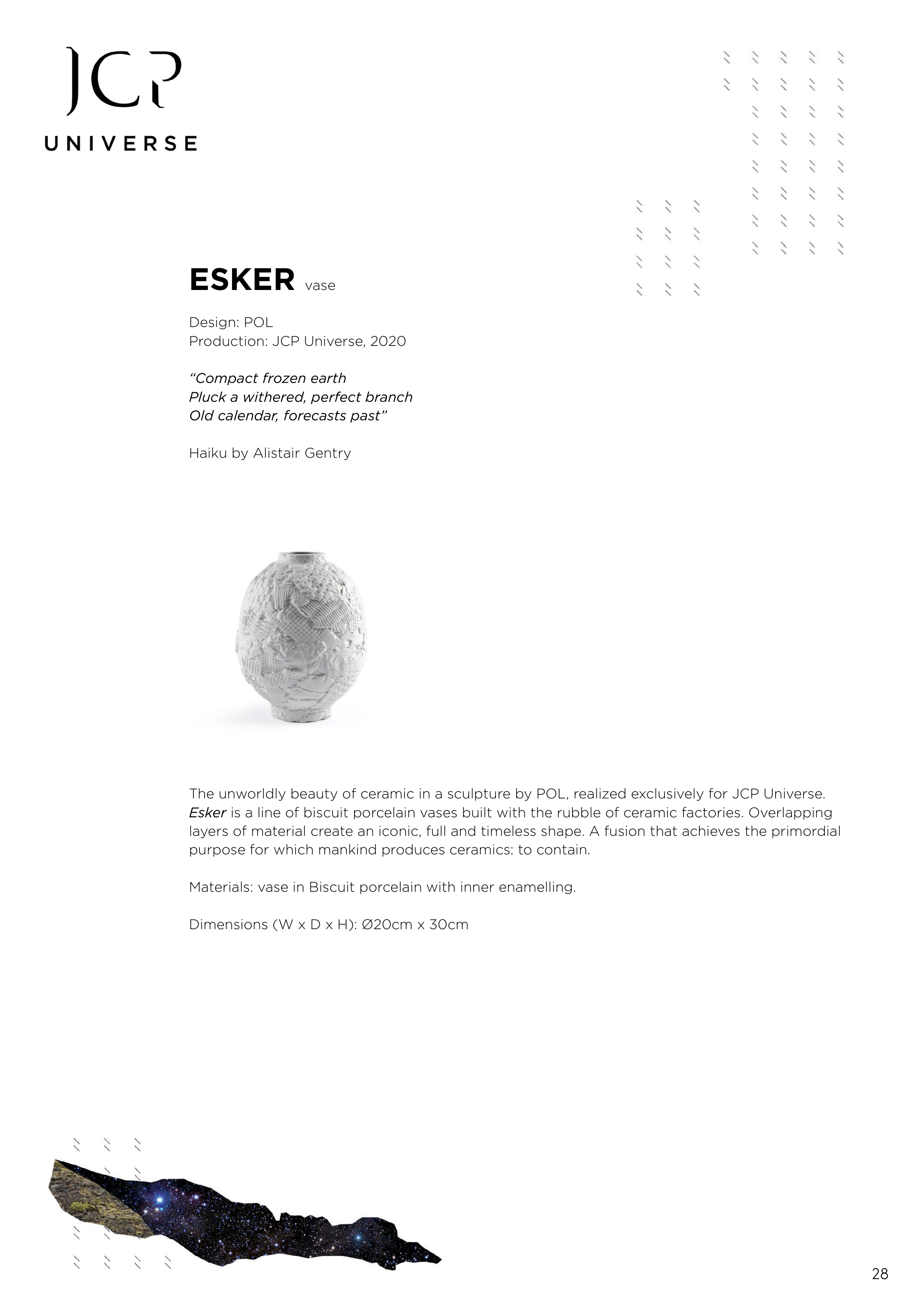 Esker is a line of biscuit porcelain vases built with the rubble of ceramic factories. Overlapping