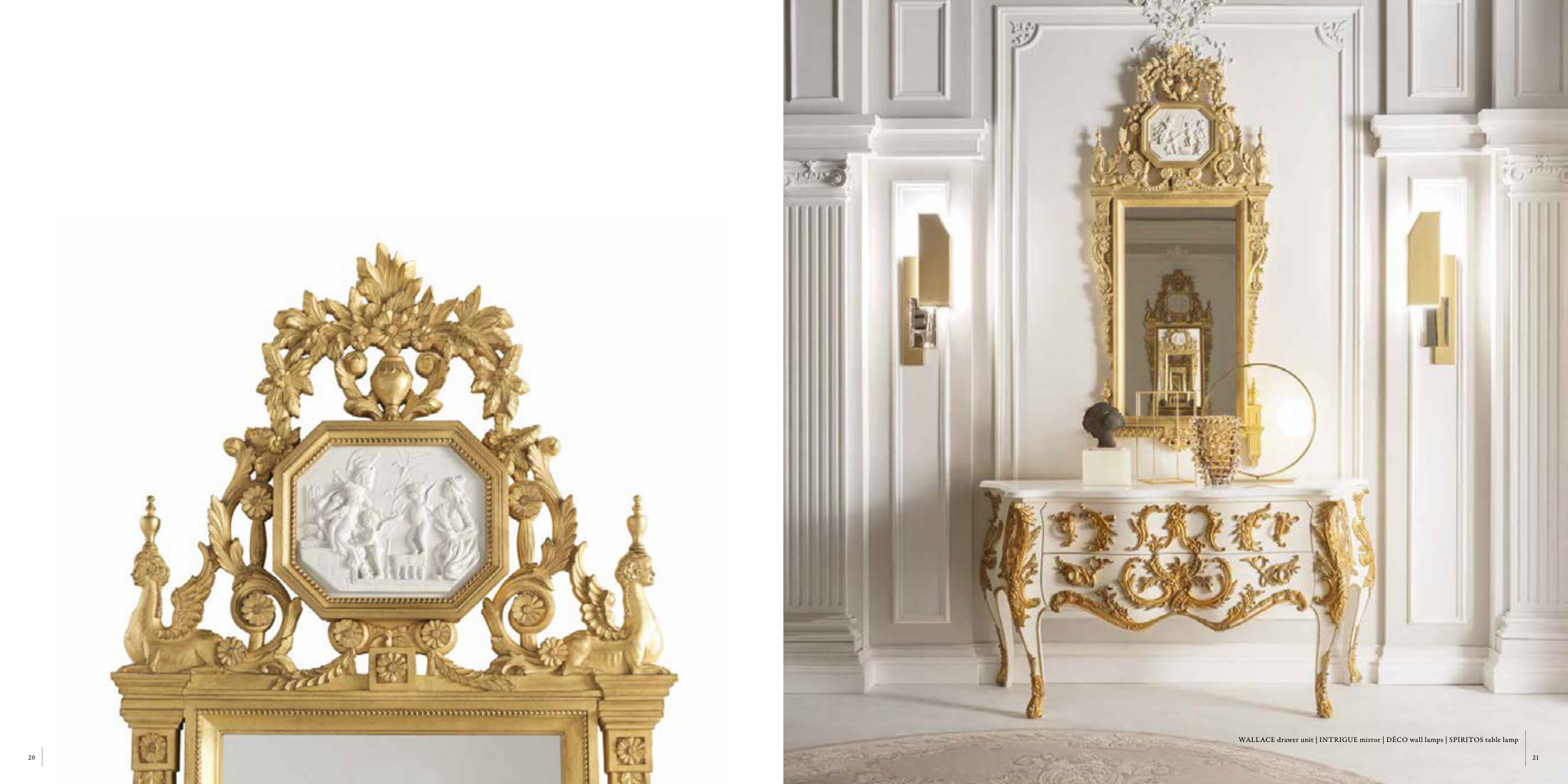 WALLACE drawer unit | INTRIGUE mirror | DÉCO wall lamps | SPIRITOS table lamp