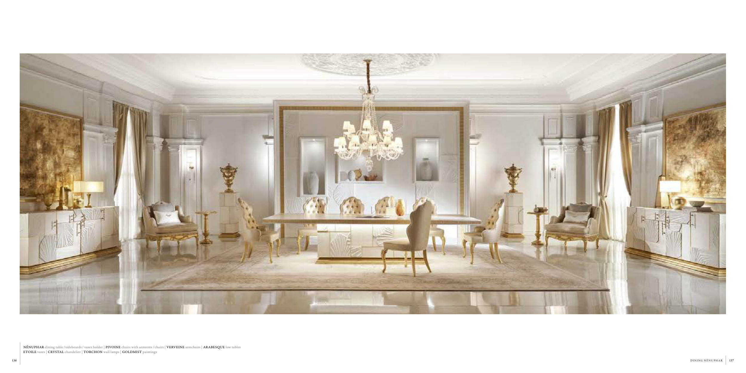ETOILE vases | CRYSTAL chandelier | TORCHON wall lamps | GOLDMIST paintings