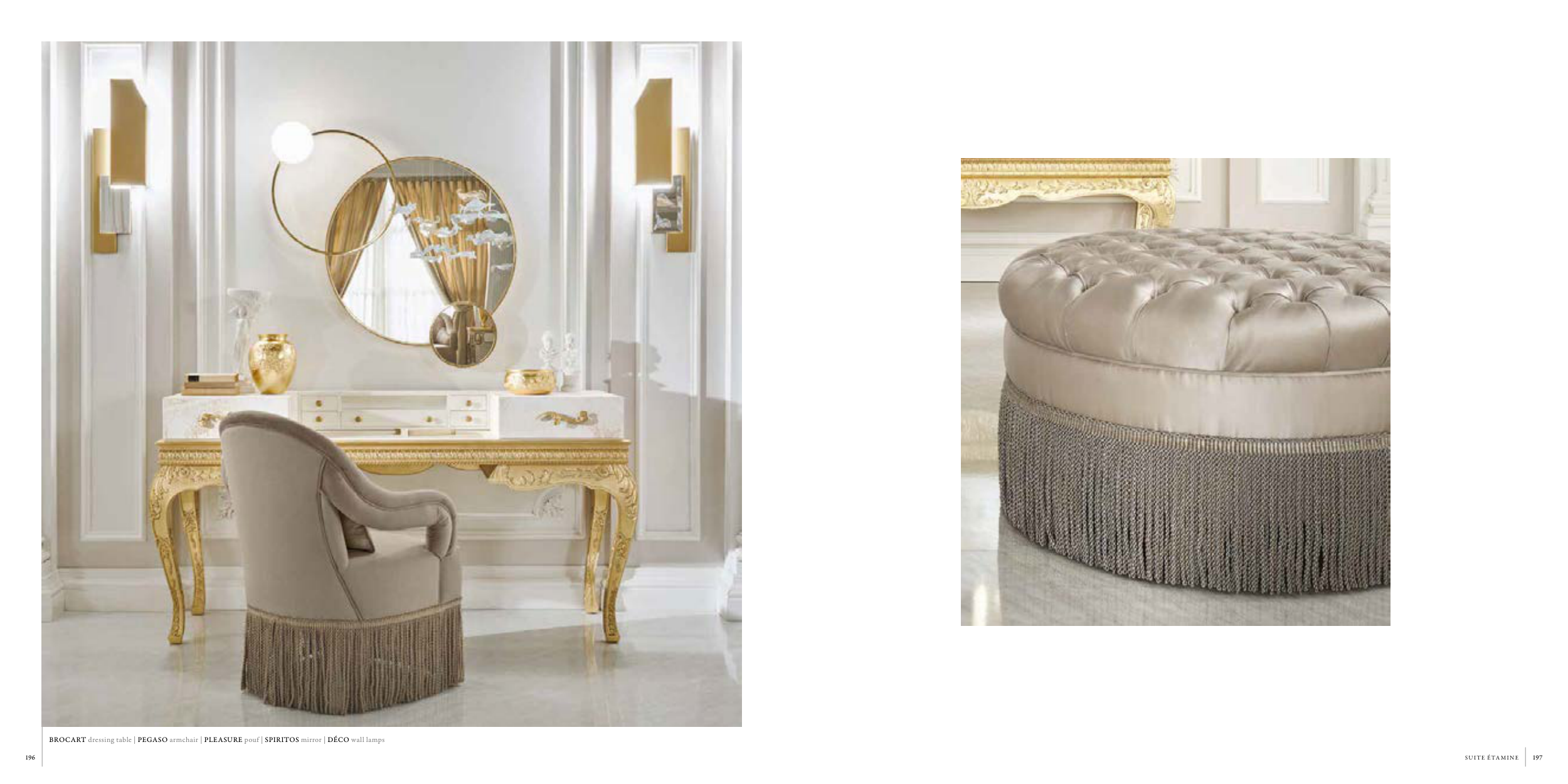 BROCART dressing table | PEGASO armchair | PLEASURE pouf | SPIRITOS mirror | DÉCO wall lamps