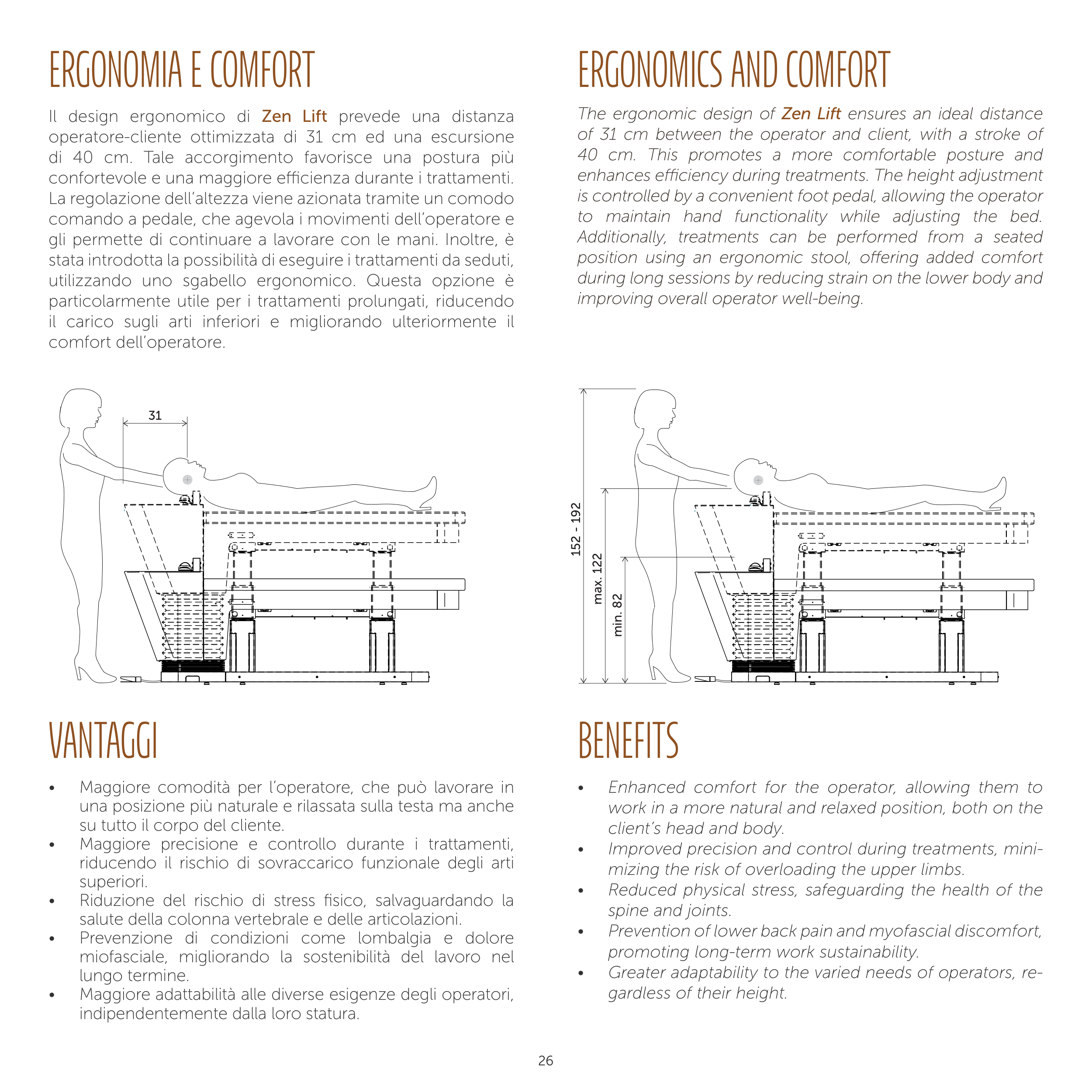 of 31 cm between the operator and client, with a stroke of