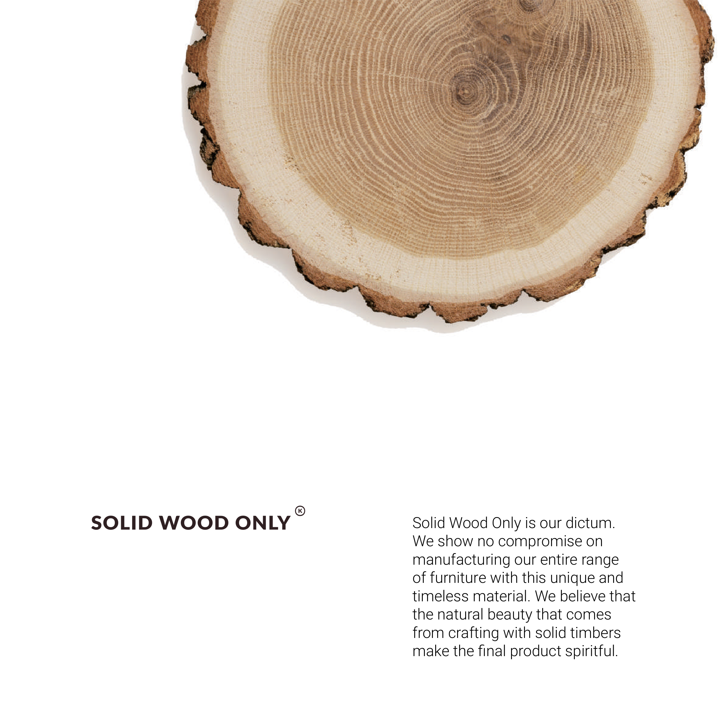 Solid Wood Only is our dictum. We show no compromise on manufacturing our entire range of furniture with this unique and timeless material. We believe that the natural beauty that comes from crafting with solid timbers make the final product spiritful.