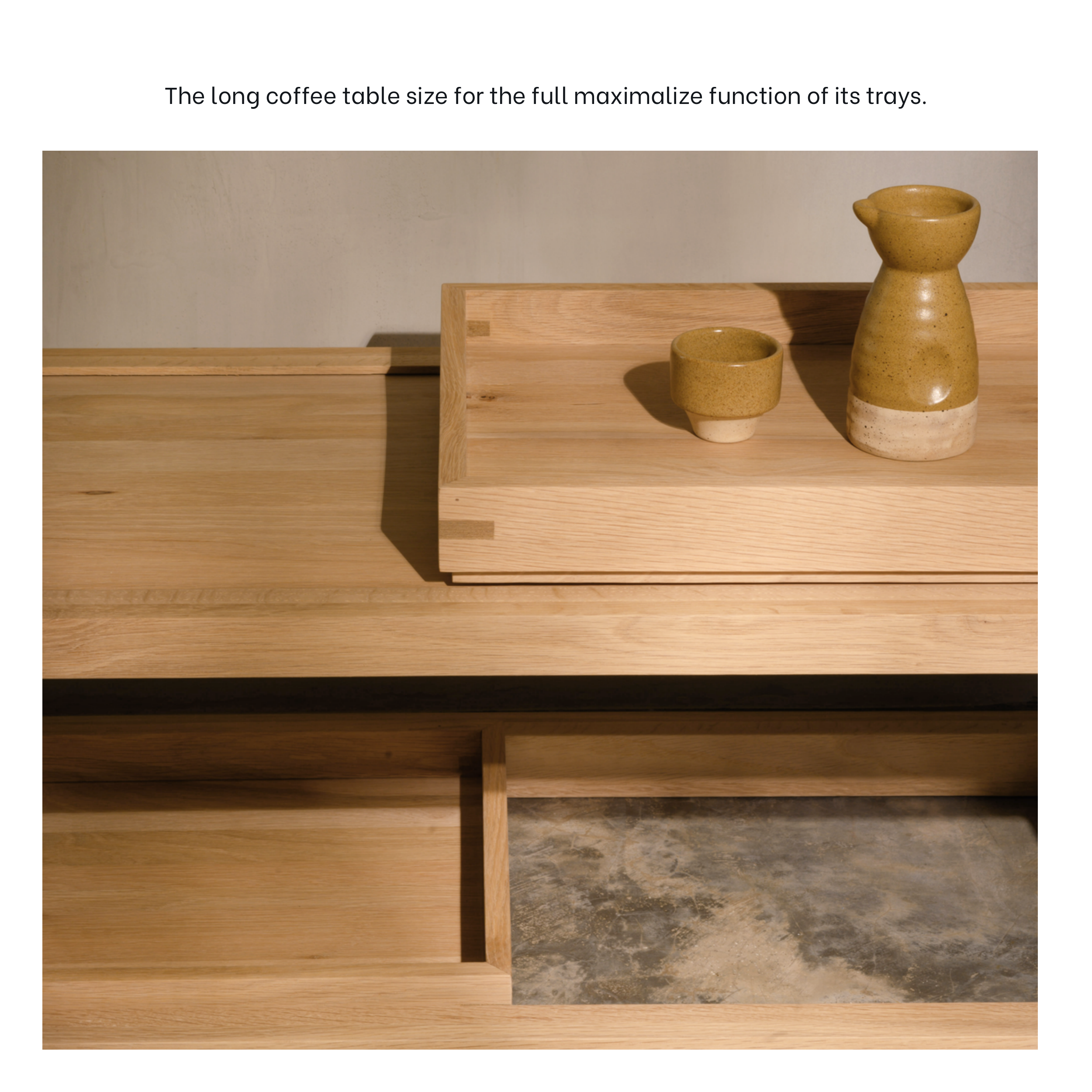 The long coffee table size for the full maximalize function of its trays.