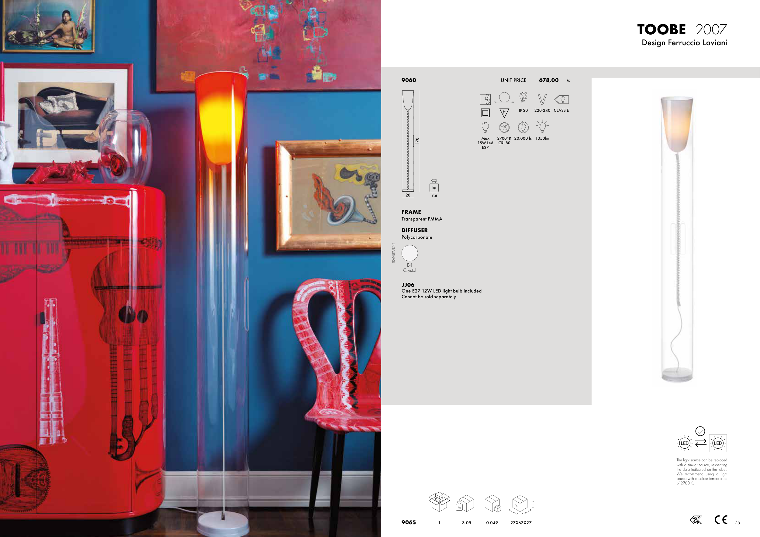 One E27 12W LED light bulb included