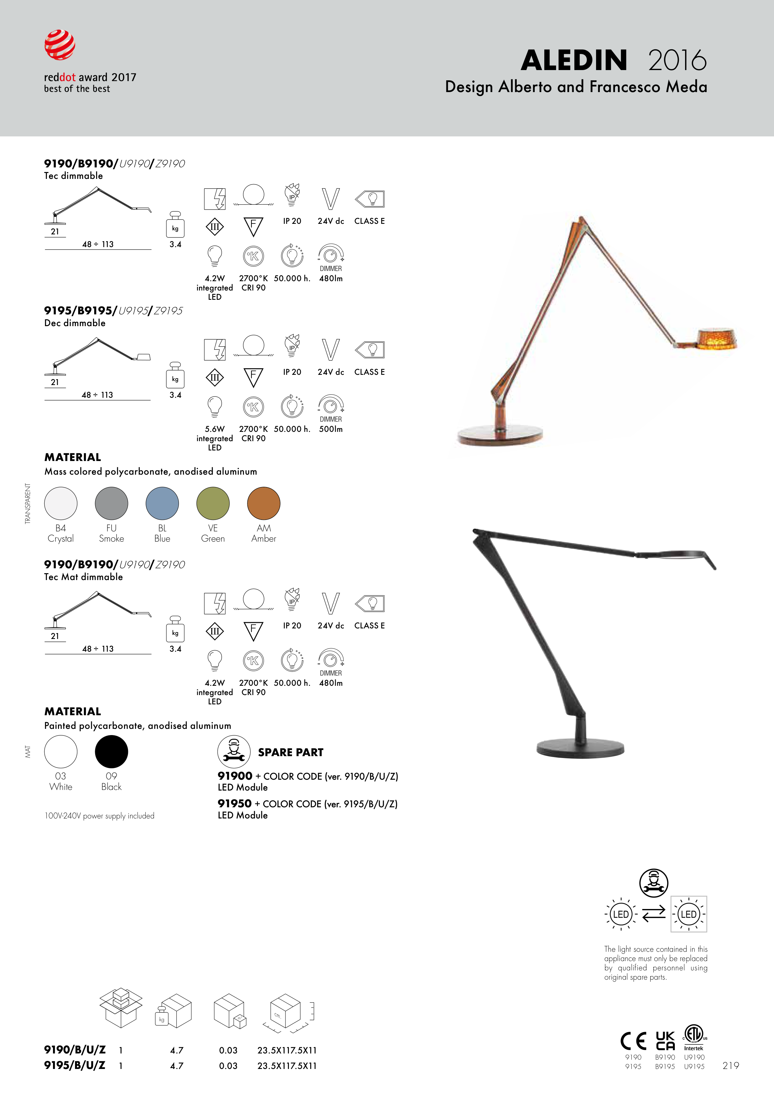 Painted polycarbonate, anodised aluminum
