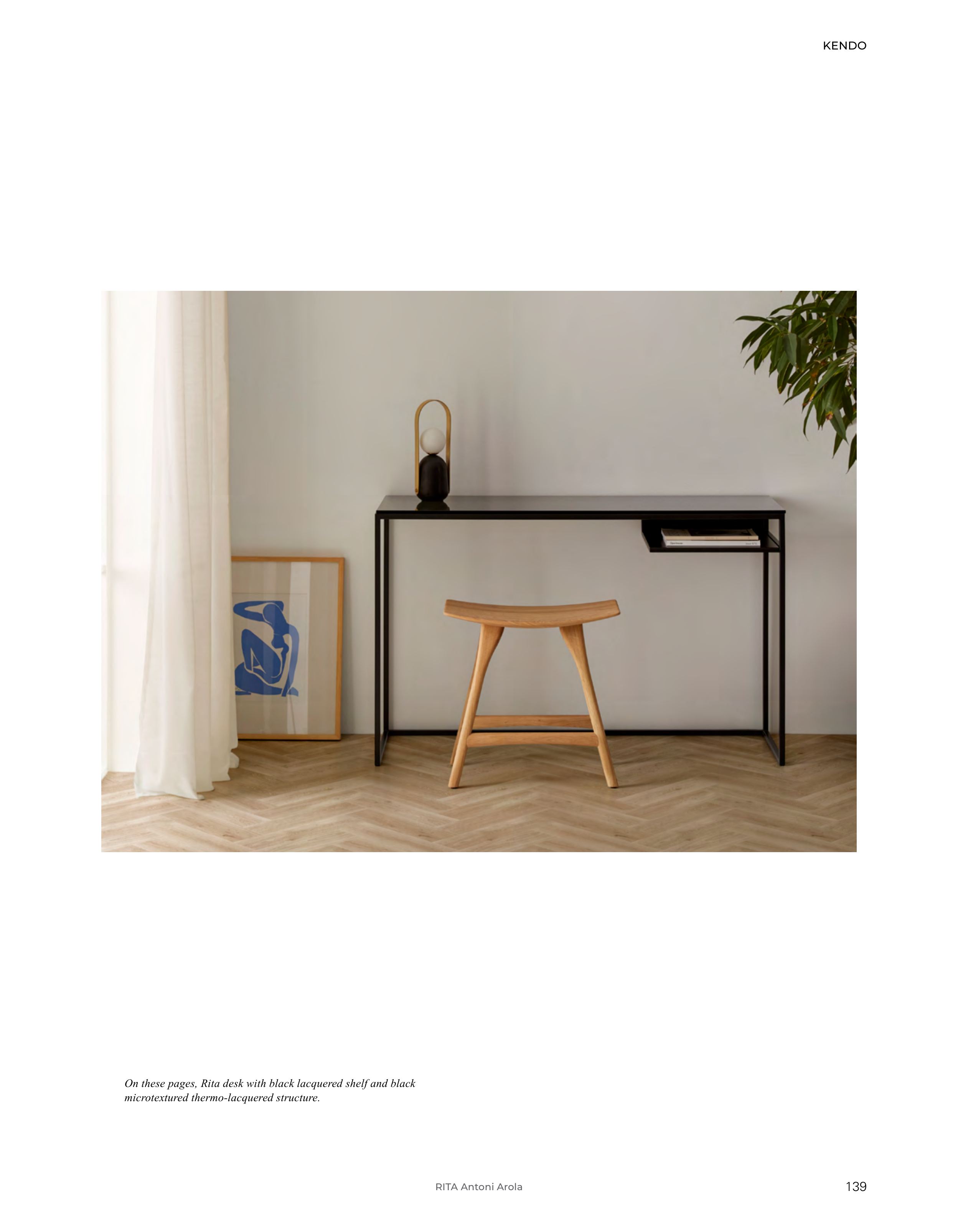 On these pages, Rita desk with black lacquered shelf and black