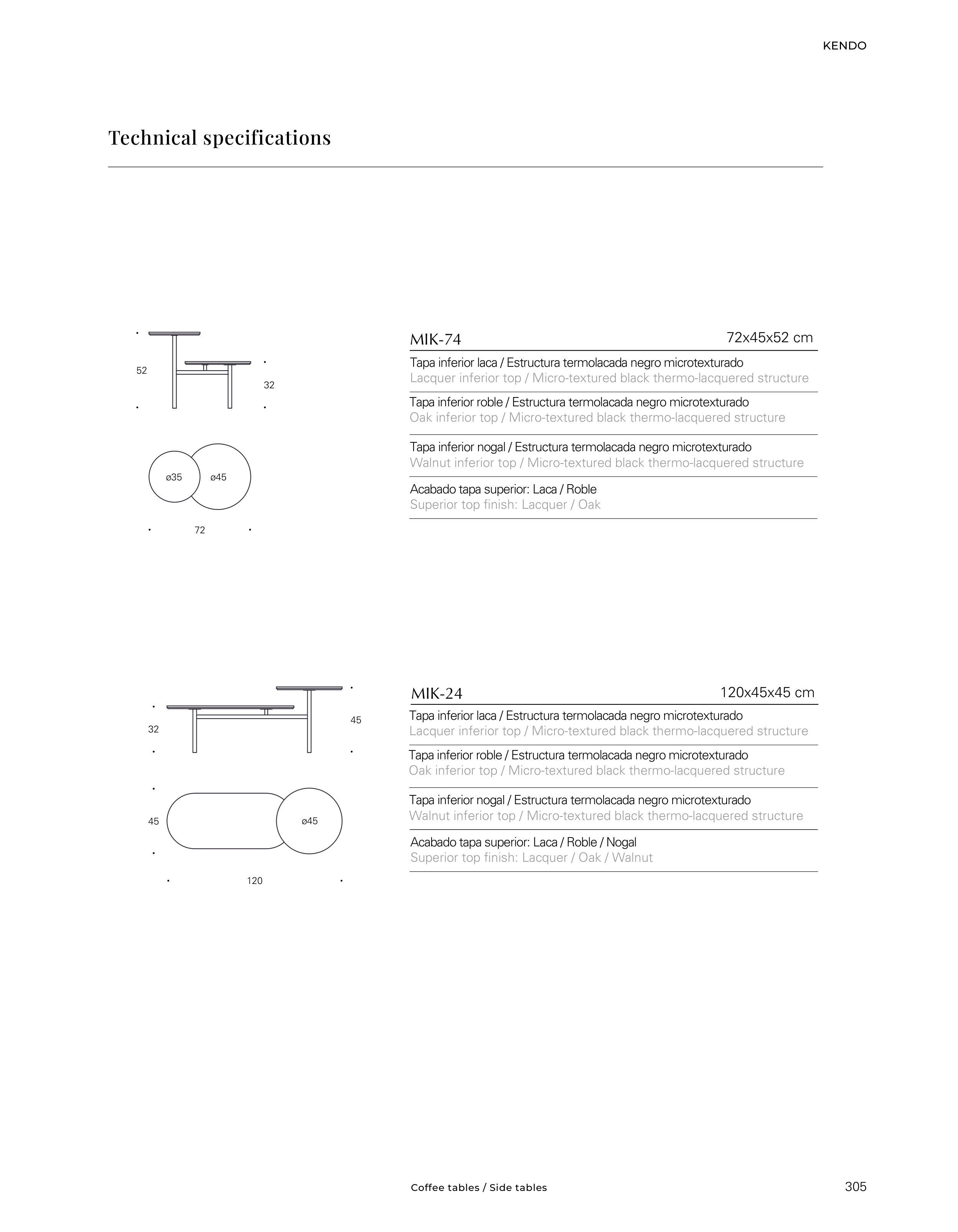 Acabado tapa superior: Laca / Roble / Nogal