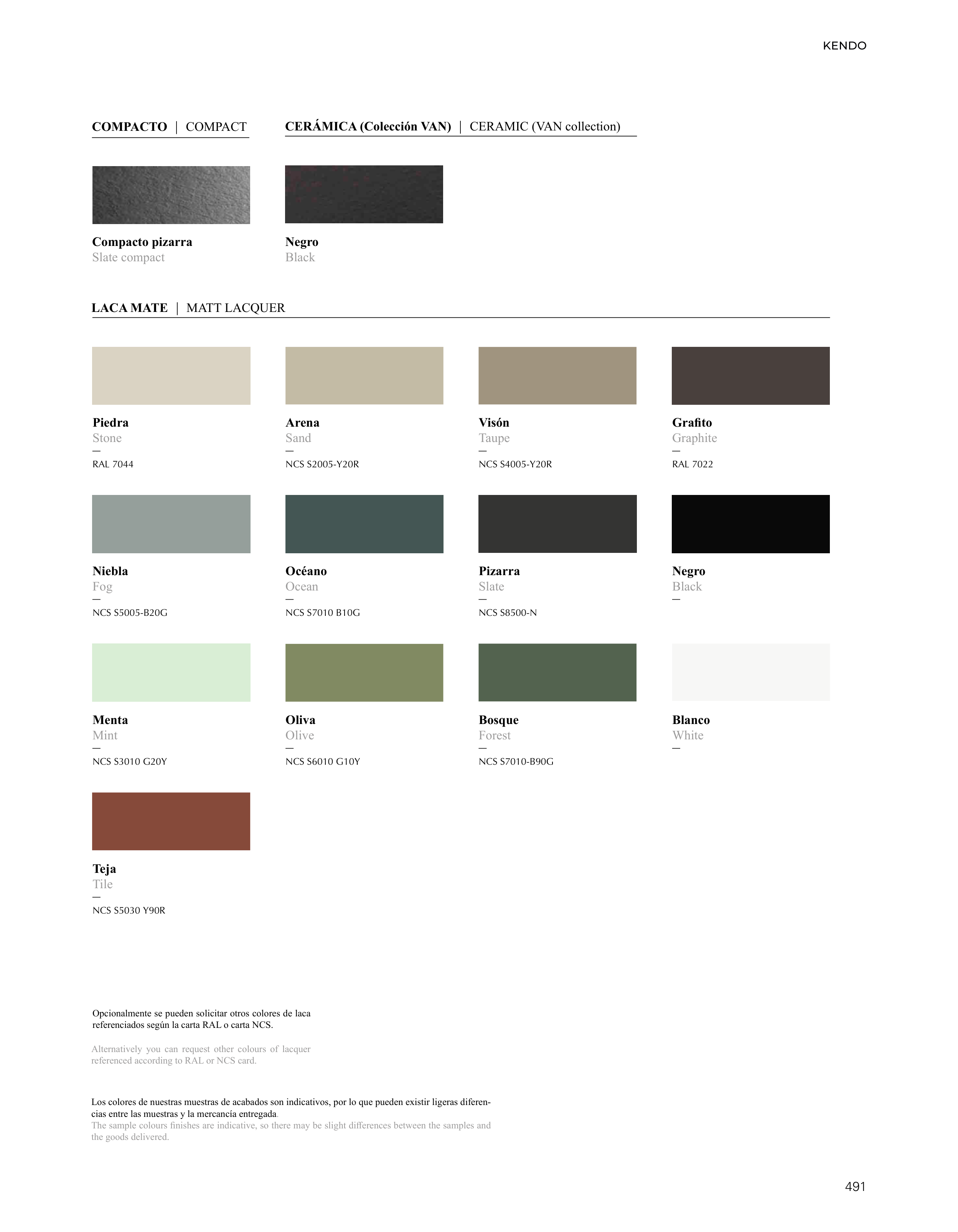 Los colores de nuestras muestras de acabados son indicativos, por lo que pueden existir ligeras diferen-