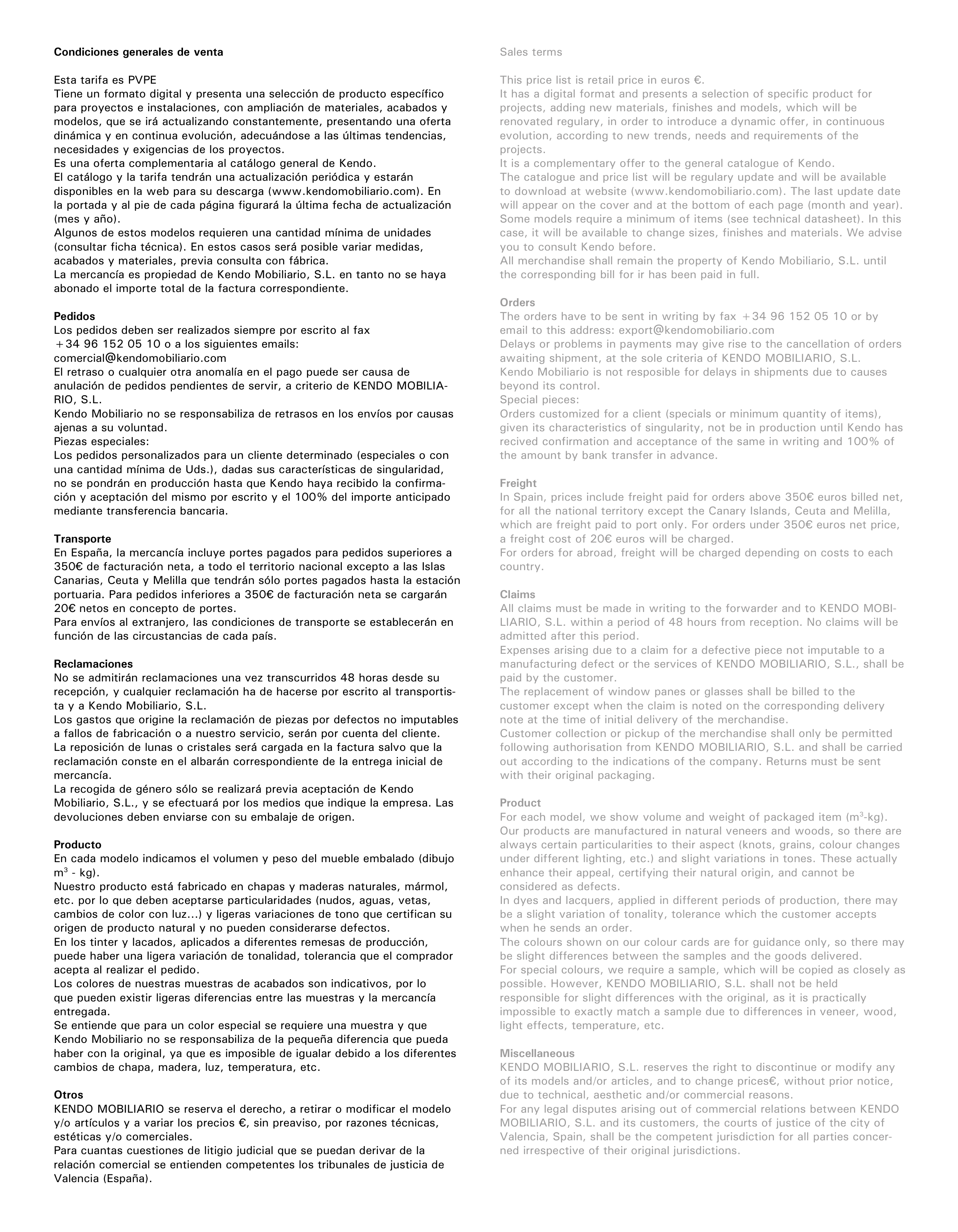 possible. However, KENDO MOBILIARIO, S.L. shall not be held