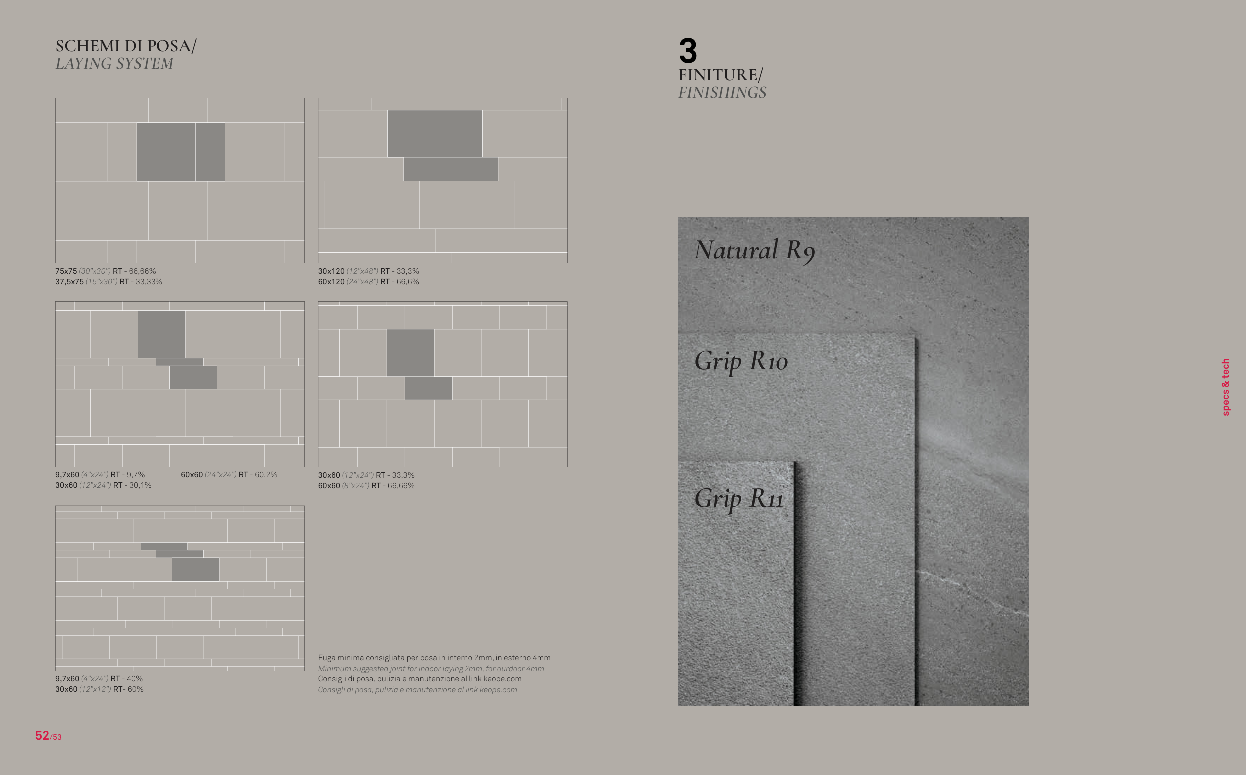Fuga minima consigliata per posa in interno 2mm, in esterno 4mm