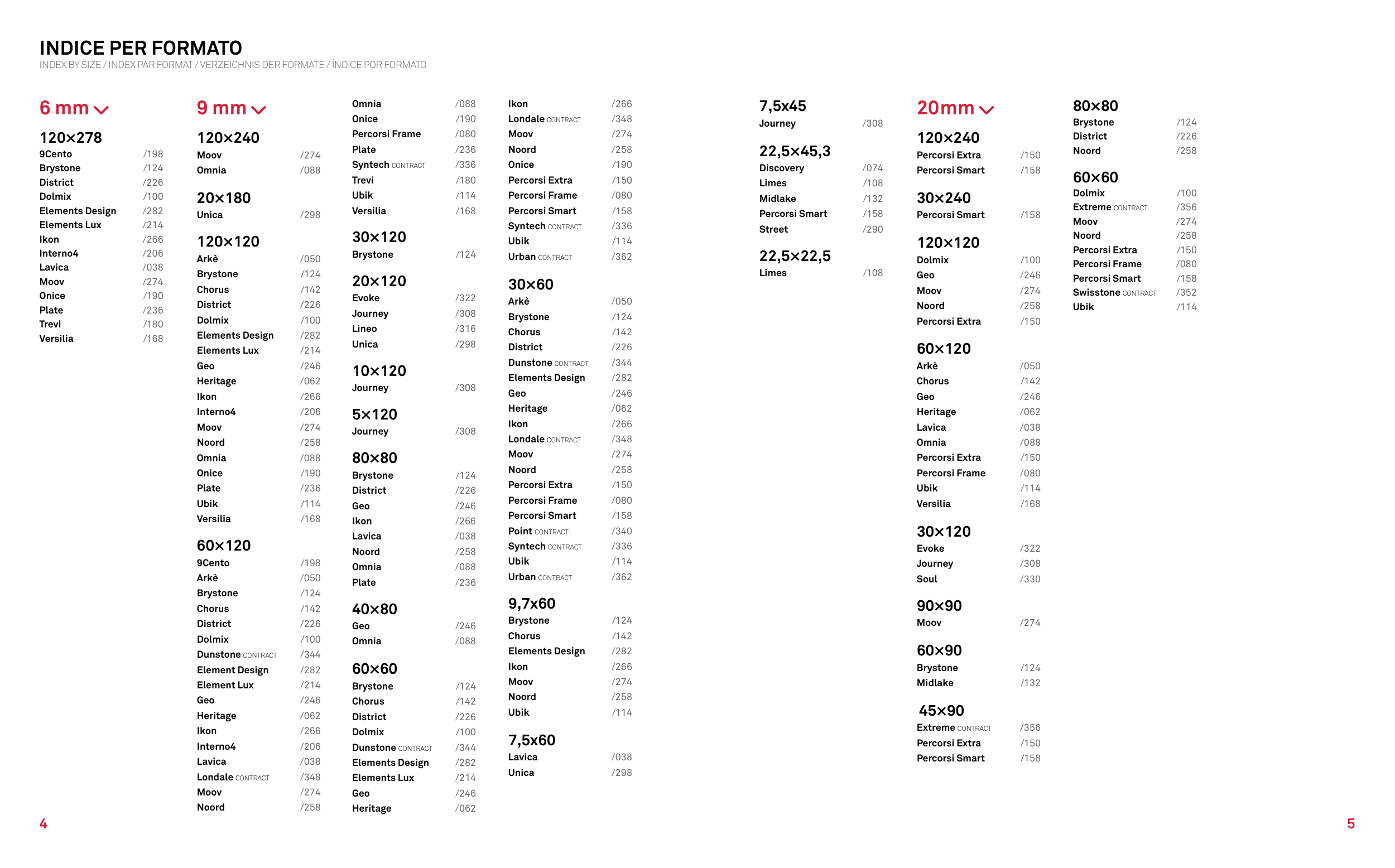 INDEX BY SIZE / INDEX PAR FORMAT / VERZEICHNIS DER FORMATE / ÍNDICE POR FORMATO