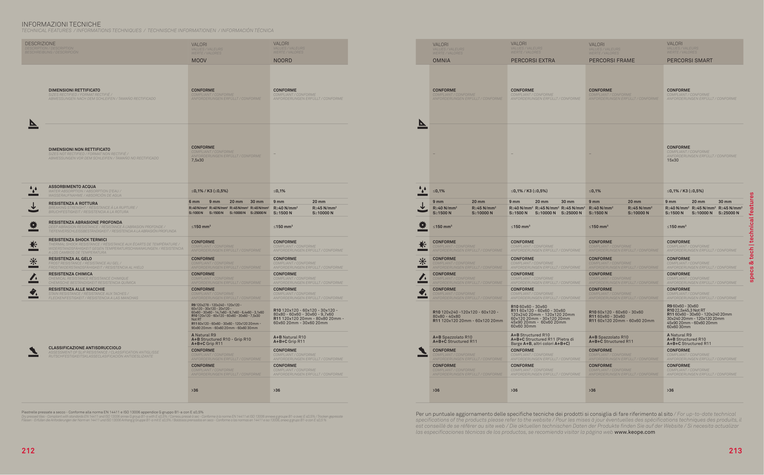 Dry pressed tiles - Compliant with standards EN 14411 and ISO 13006 annex G group B1-a with E ≤0,5% / Carreau pressé à sec - Conforme à la norme EN 14411 et ISO 13006 annexe g groupe B1-a avec E ≤0,5% / Trocken gepresste