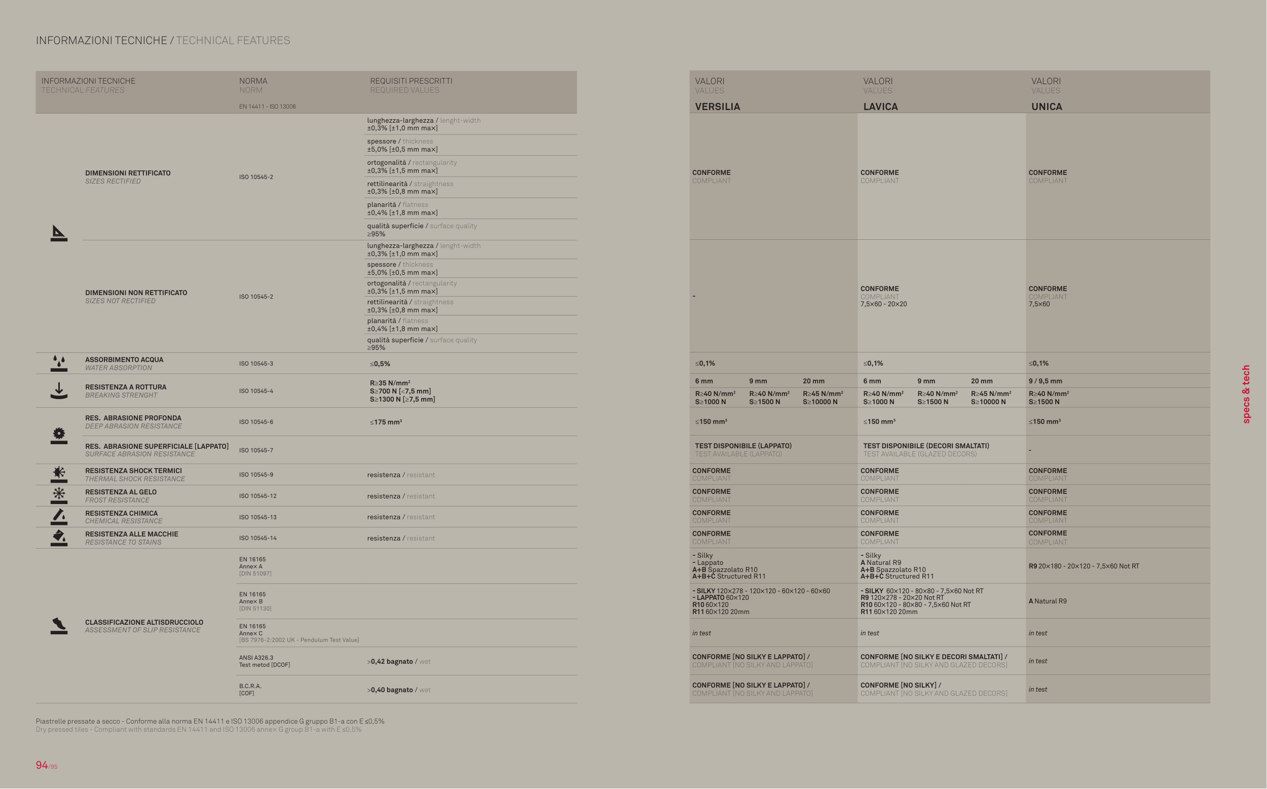 Dry pressed tiles - Compliant with standards EN 14411 and ISO 13006 anne× G group B1-a with E �0,5%