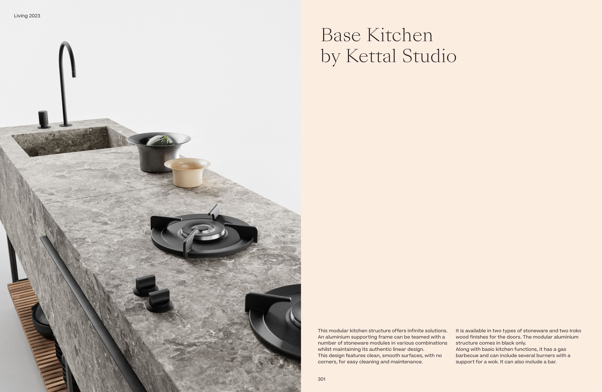 It is available in two types of stoneware and two Iroko