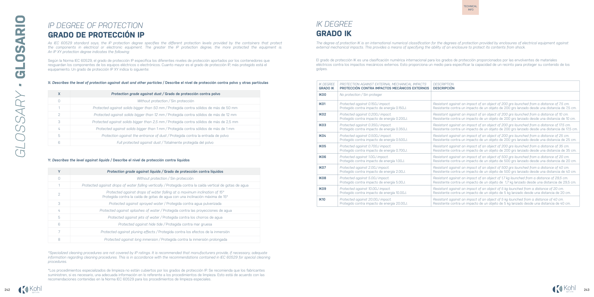information regarding cleaning procedures. This is in accordance with the recommendations contained in IEC 60529 for special cleaning
