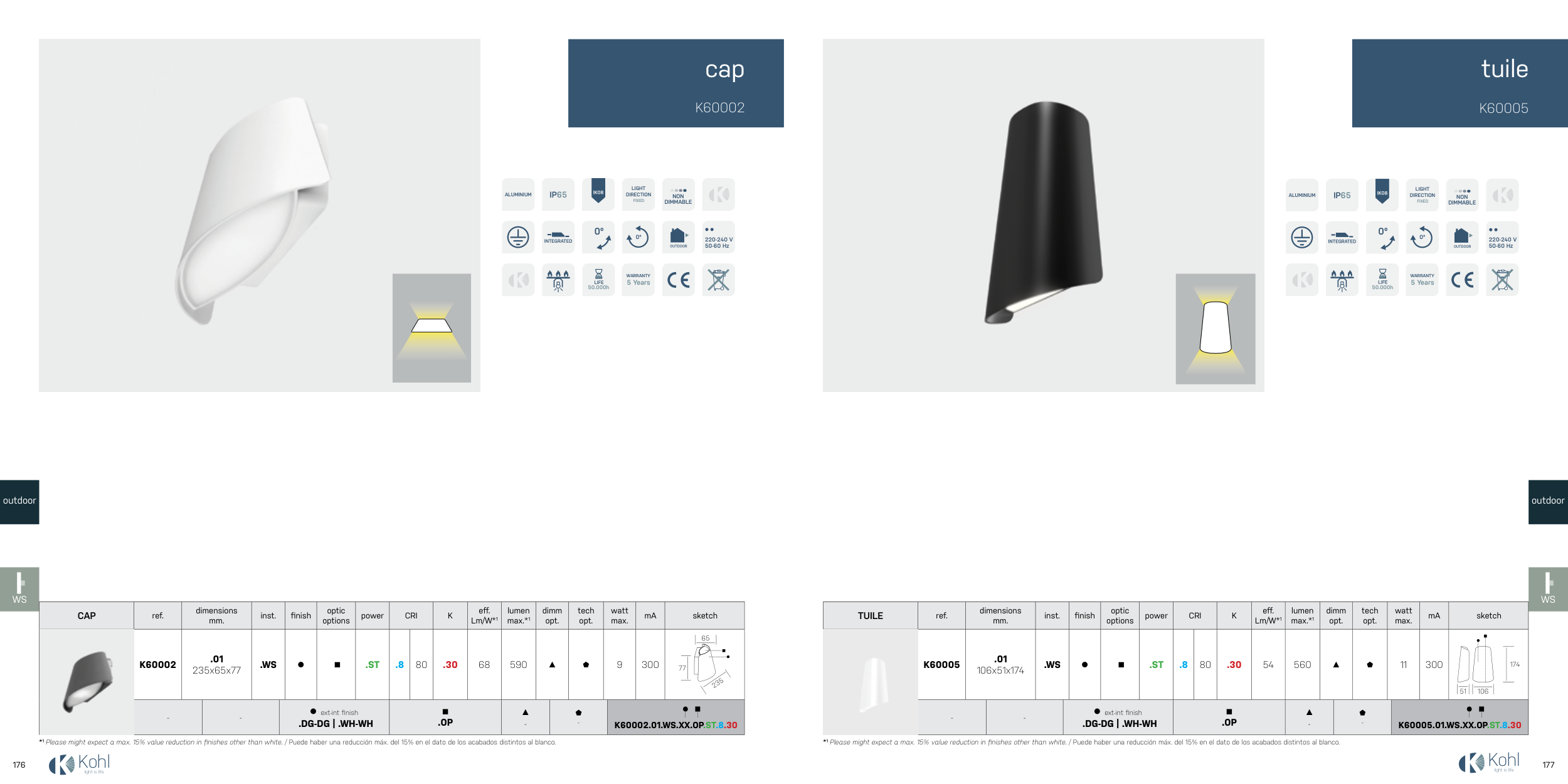 *1 Please might expect a max. 15% value reduction in finishes other than white. / Puede haber una reducción máx. del 15% en el dato de los acabados distintos al blanco.