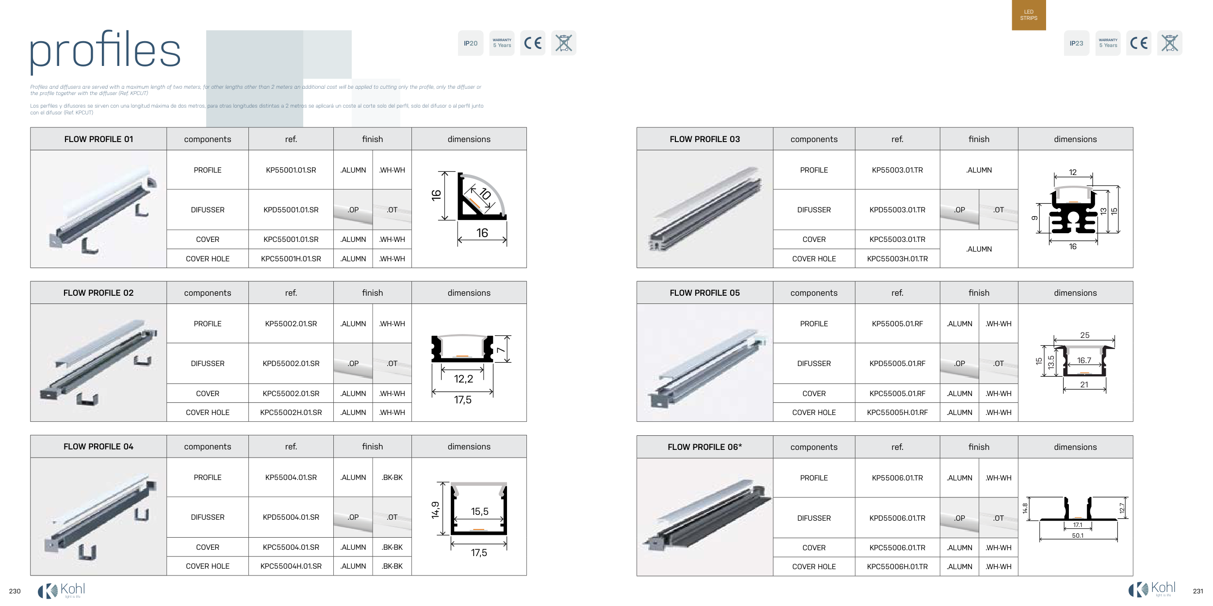 Profiles and diffusers are served with a maximum length of two meters, for other lengths other than 2 meters an additional cost will be applied to cutting only the profile, only the diffuser or