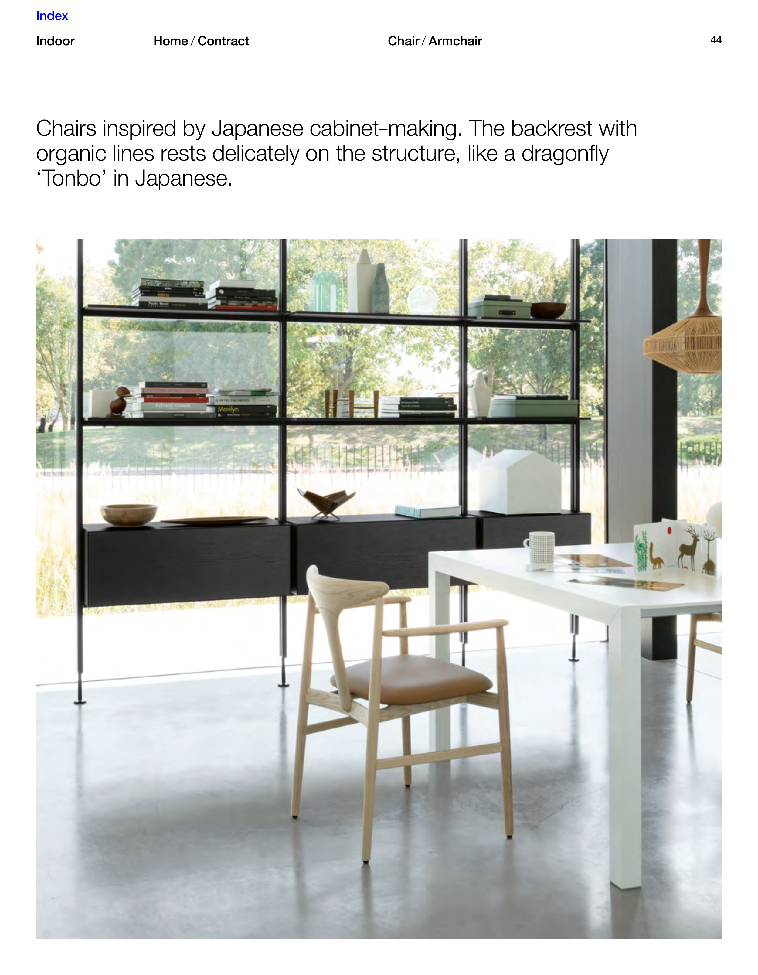 Chairs inspired by Japanese cabinet–making. The backrest with