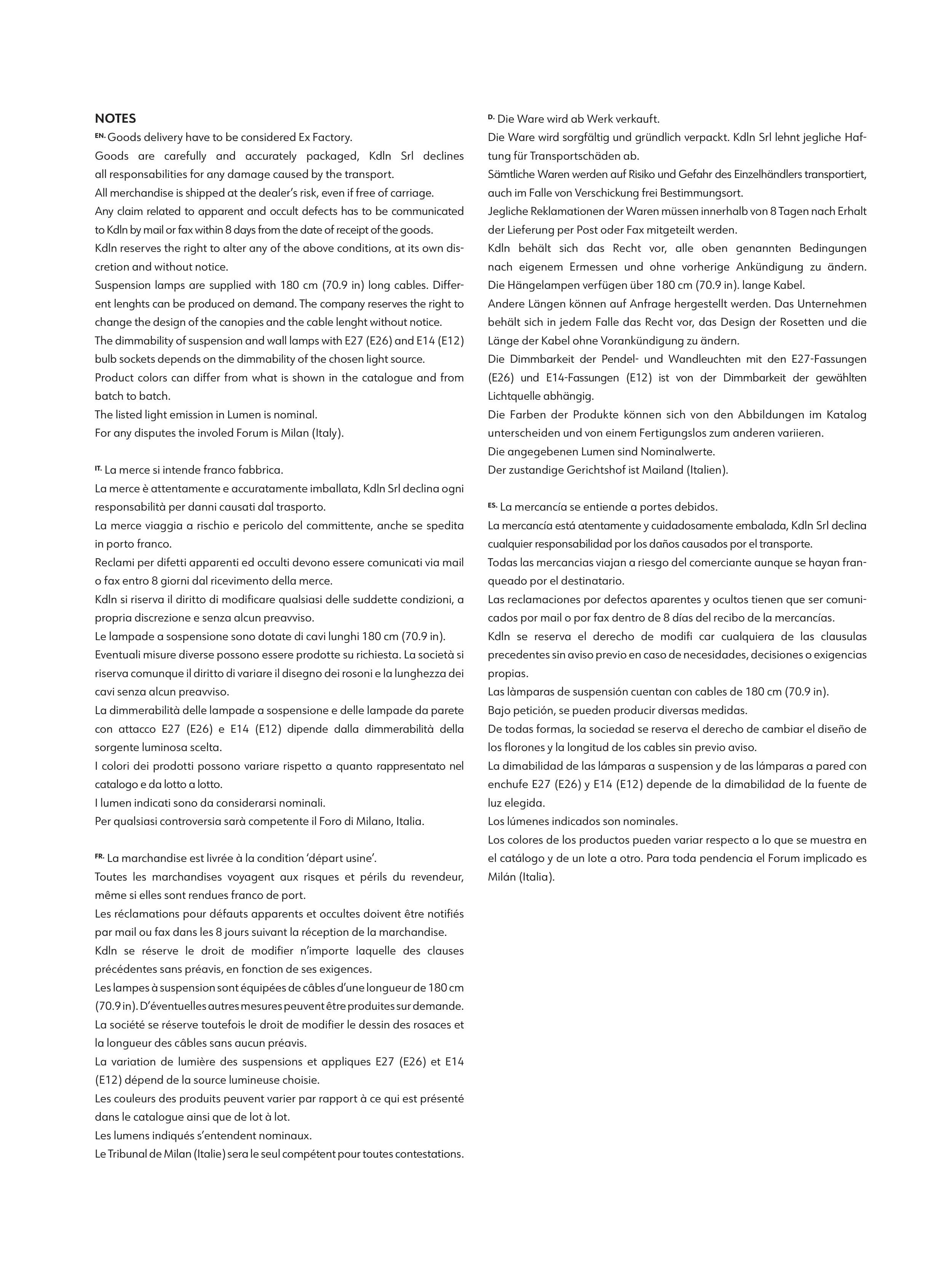 Die Ware wird sorgfältig und gründlich verpackt. Kdln Srl lehnt jegliche Haf-
