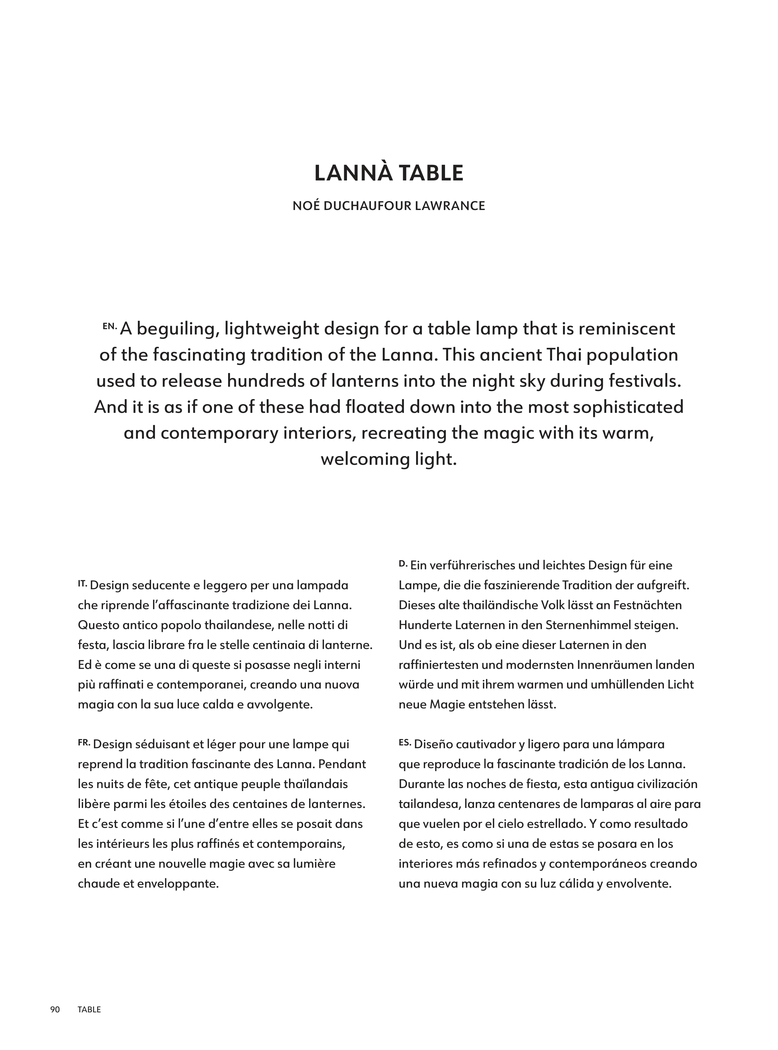 EN. A beguiling, lightweight design for a table lamp that is reminiscent