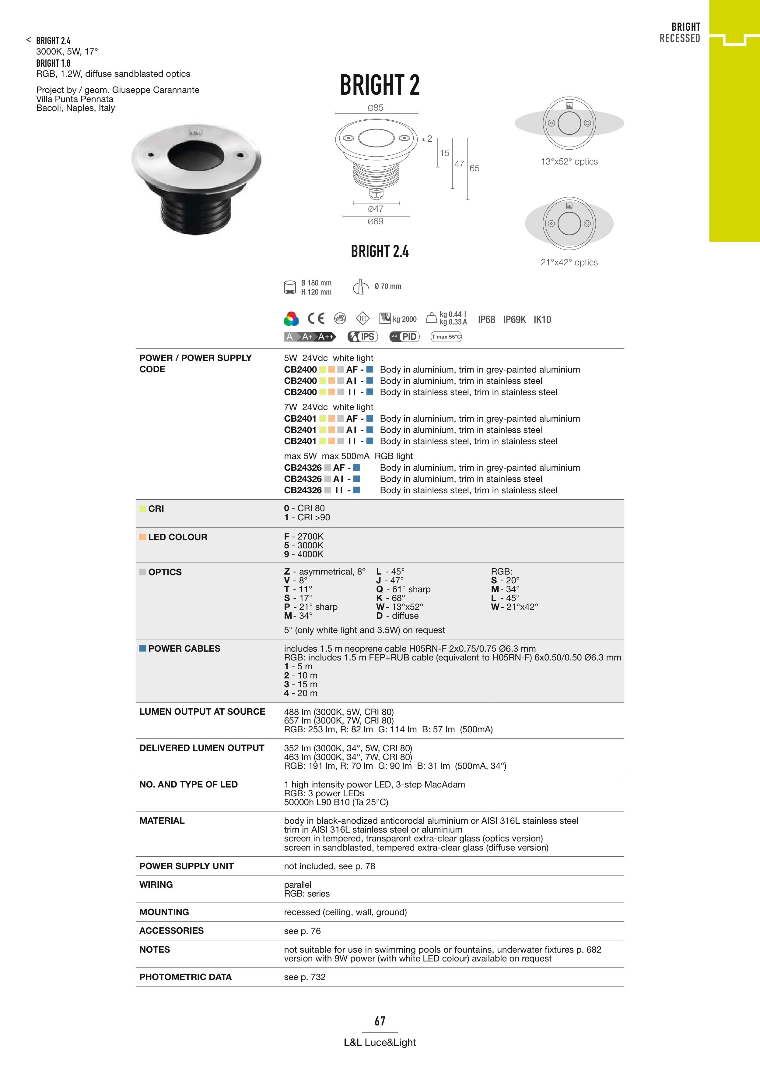 5° (only white light and 3.5W) on request