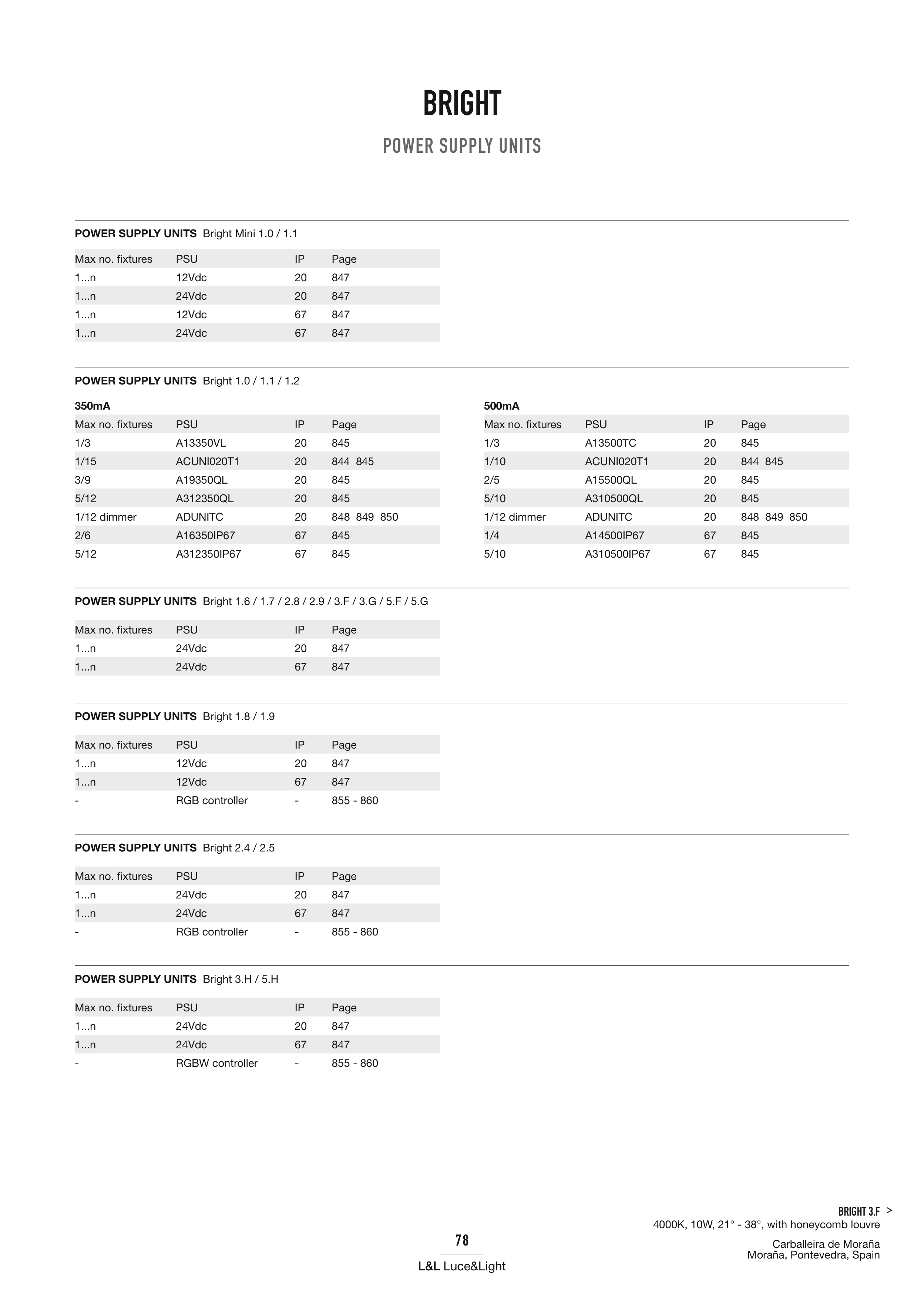 POWER SUPPLY UNITS Bright 1.6 / 1.7 / 2.8 / 2.9 / 3.F / 3.G / 5.F / 5.G