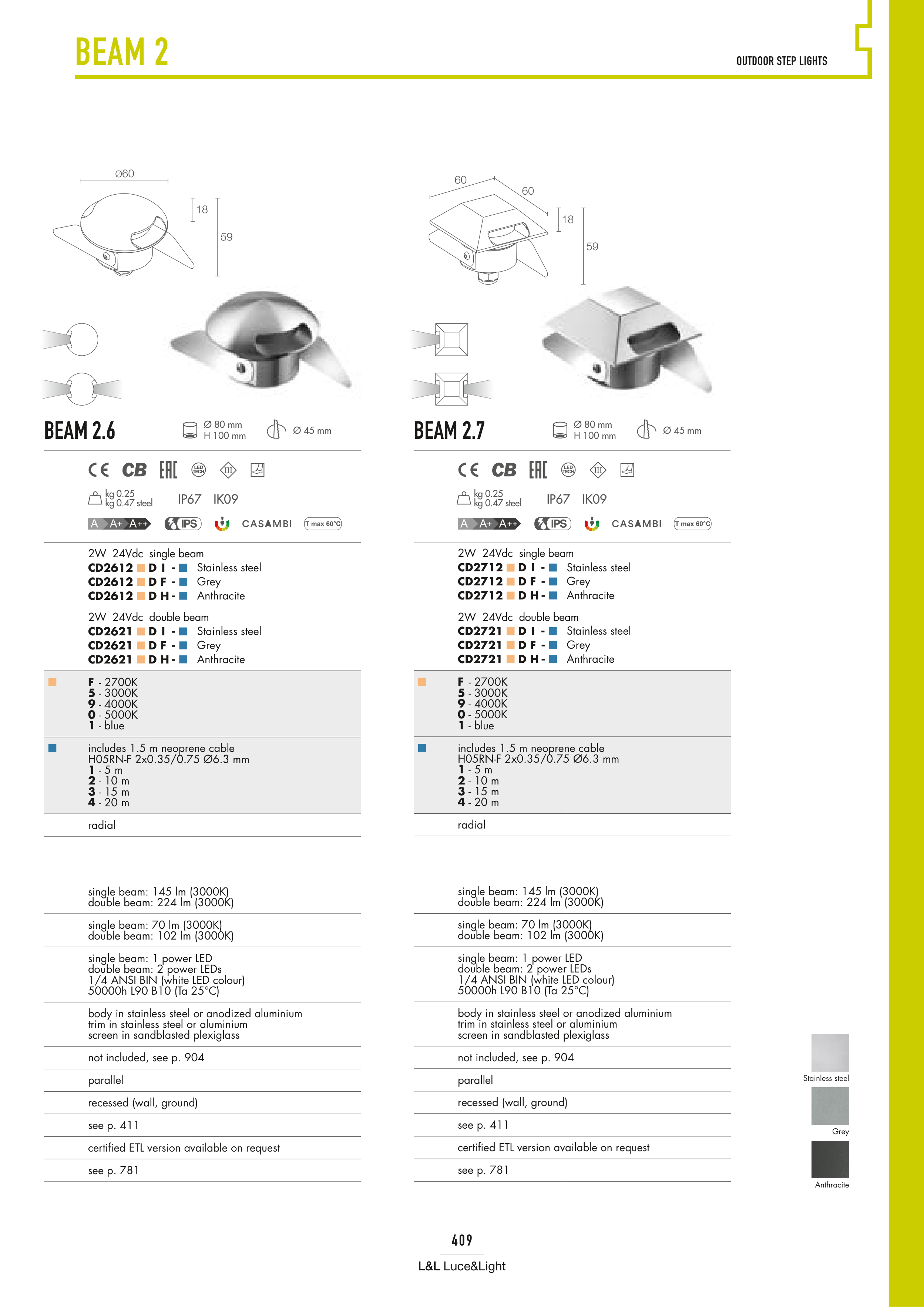 single beam: 145 lm (3000K)