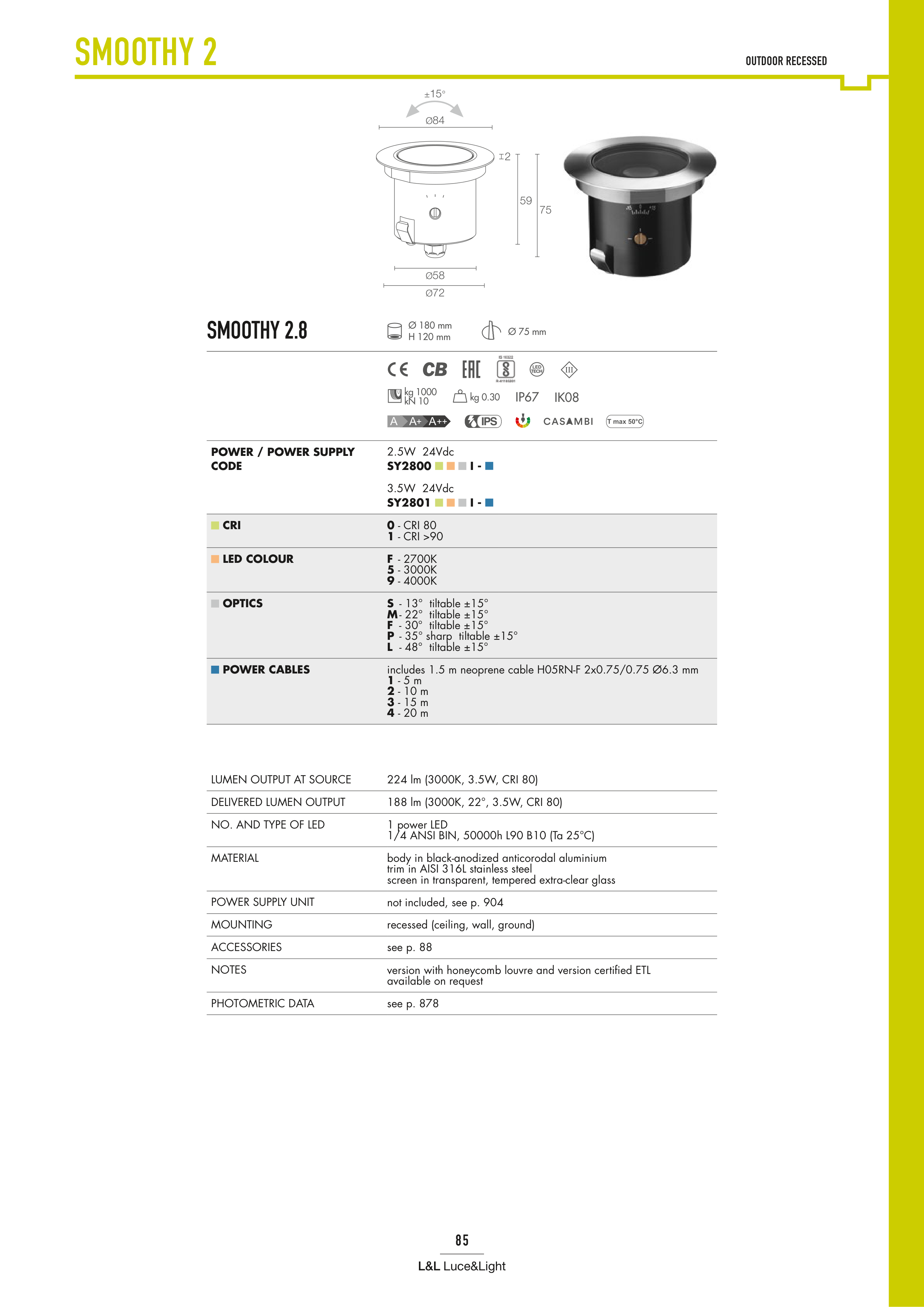 188 lm (3000K, 22°, 3.5W, CRI 80)
