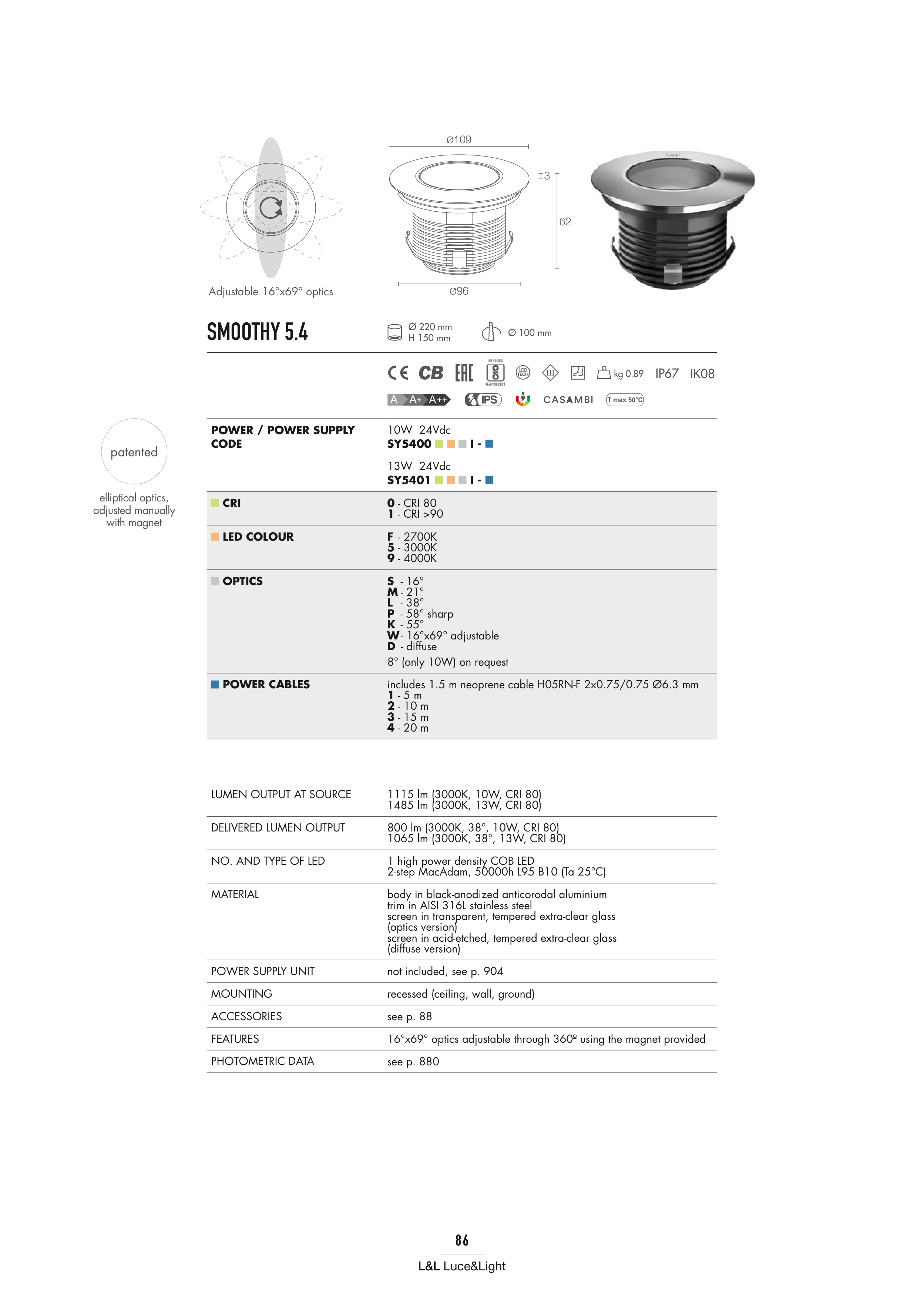 800 lm (3000K, 38°, 10W, CRI 80)