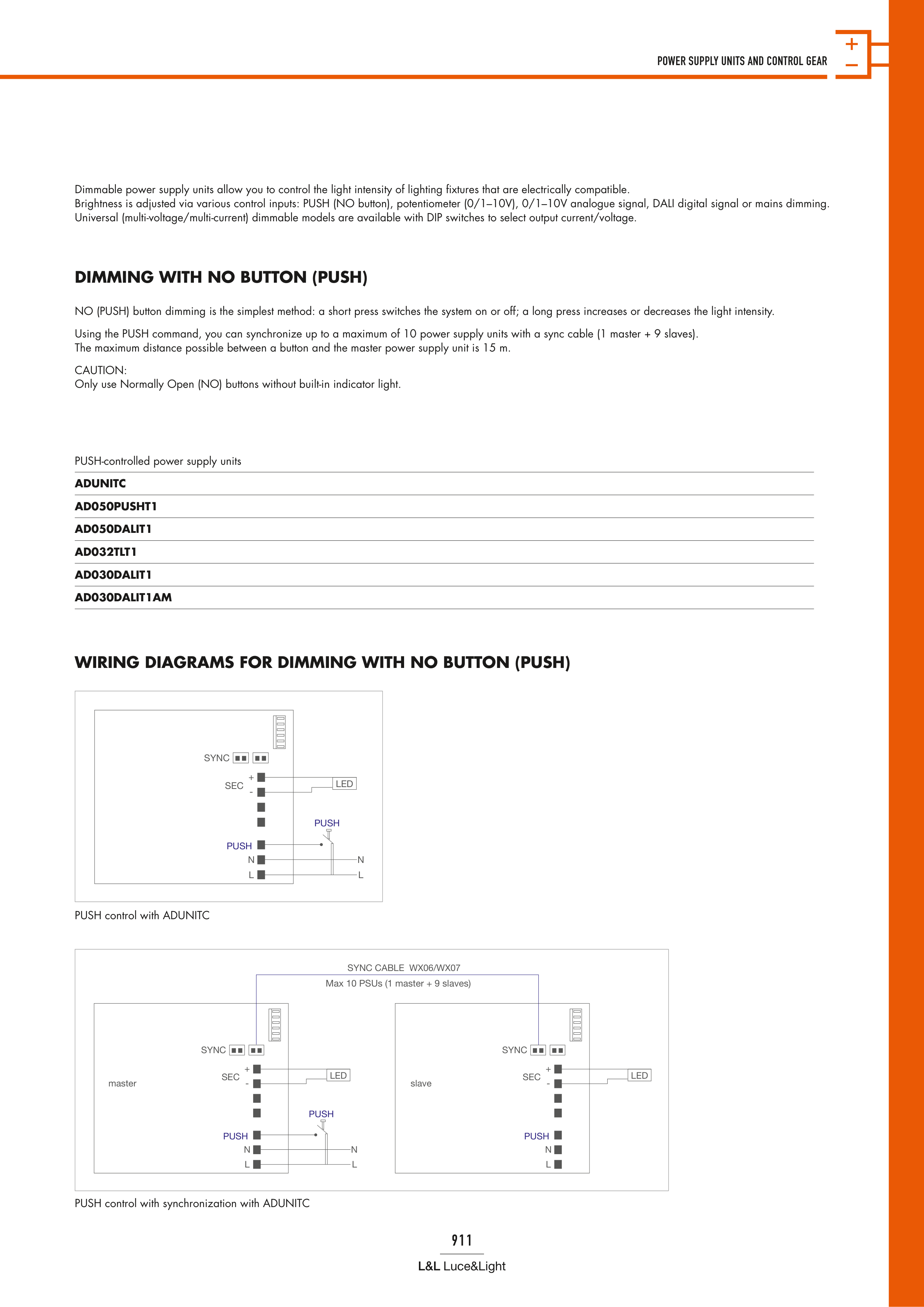 WIRING DIAGRAMS FOR DIMMING WITH NO BUTTON (PUSH)