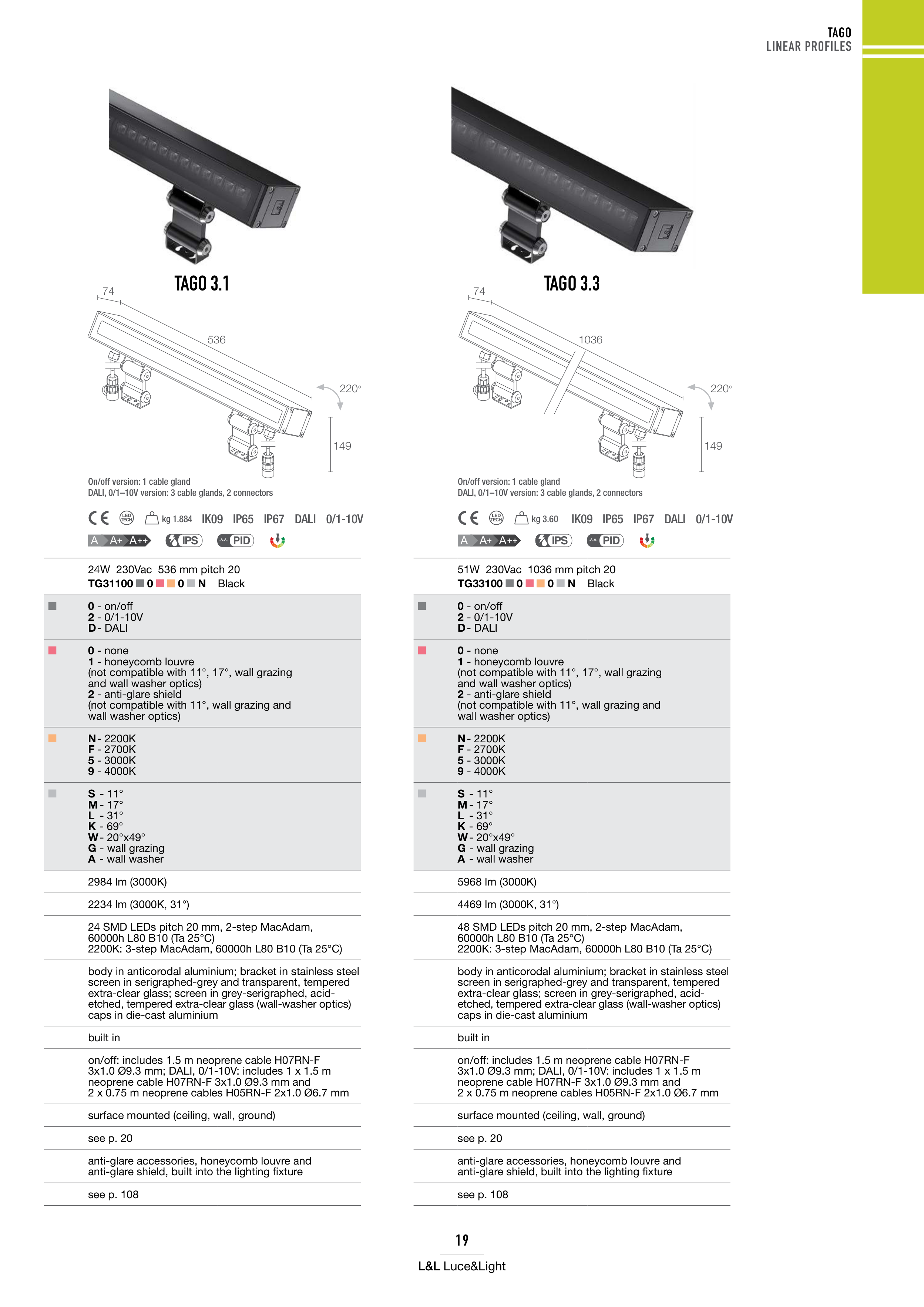 and wall washer optics)