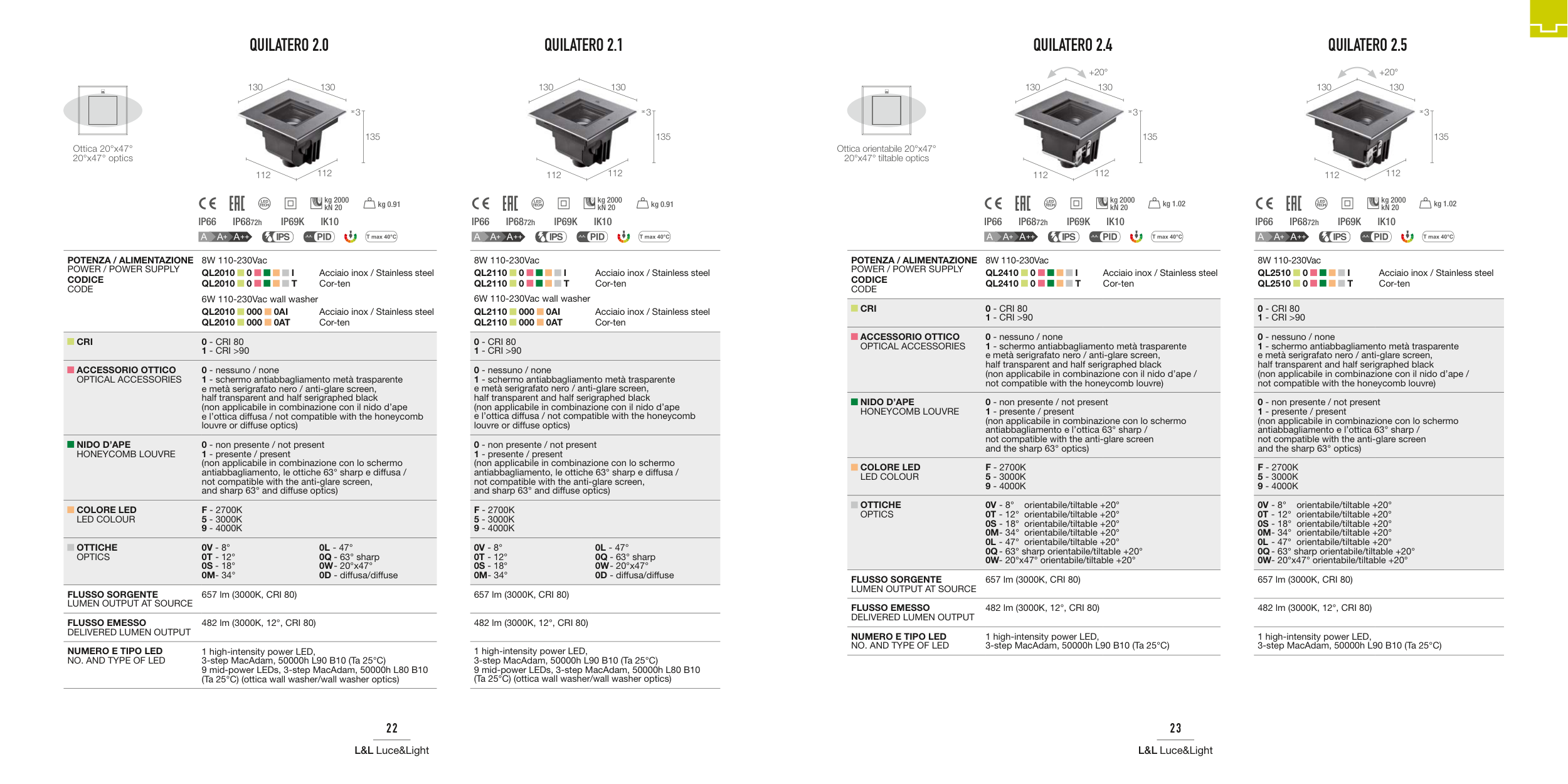 0V - 8° orientabile/tiltable +20°