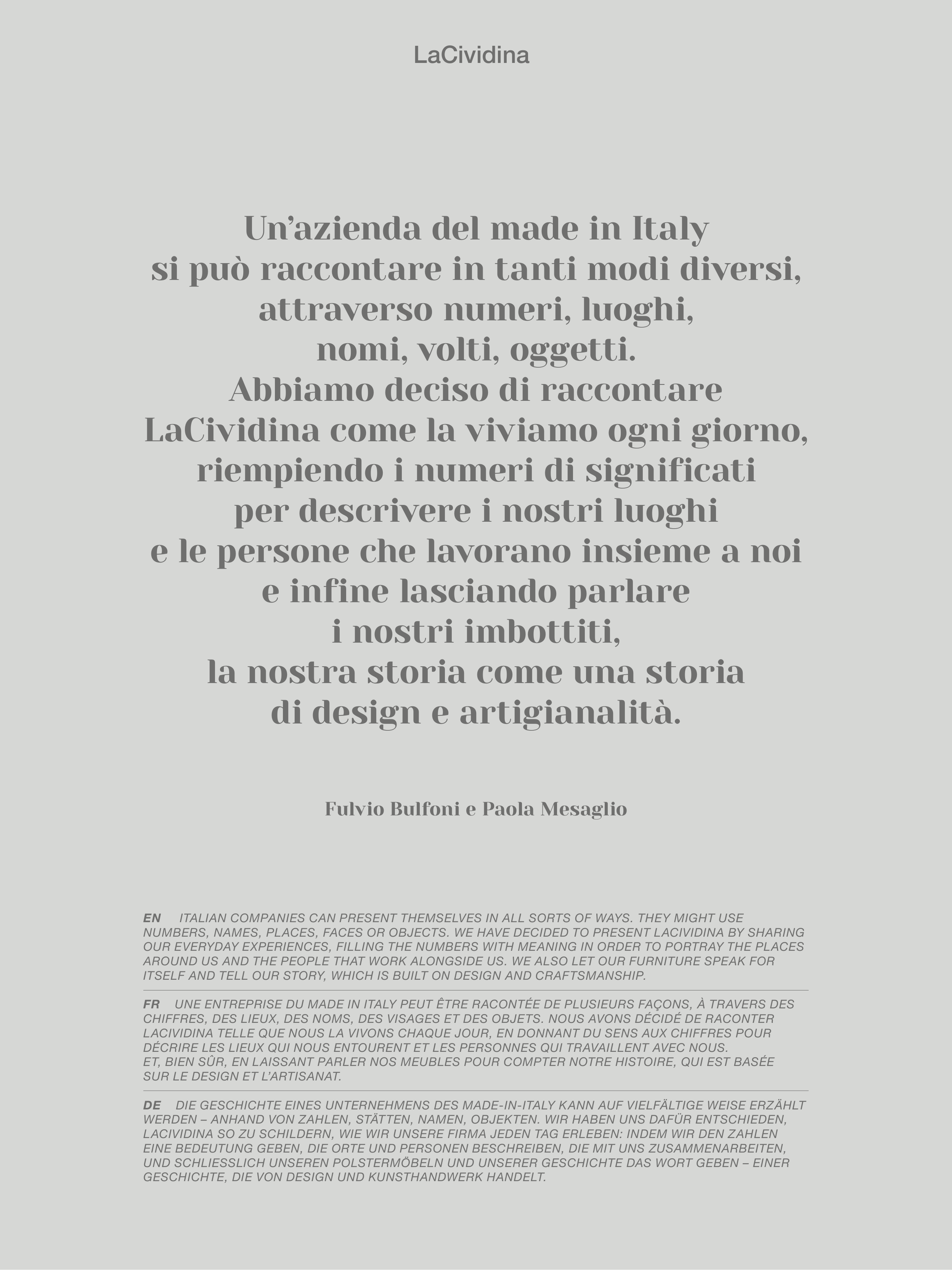 FR UNE ENTREPRISE DU MADE IN ITALY PEUT ÊTRE RACONTÉE DE PLUSIEURS FAÇONS, À TRAVERS DES