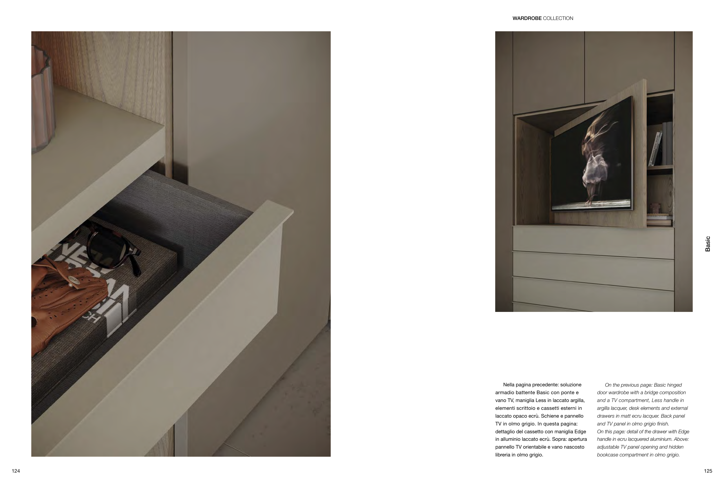 and TV panel in olmo grigio finish.