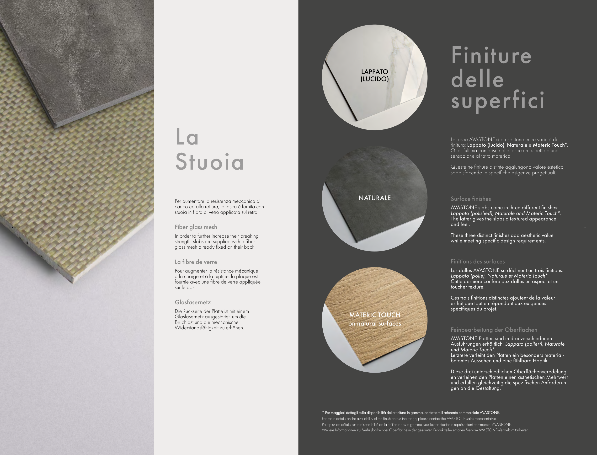 * Per maggiori dettagli sulla disponibilità della finitura in gamma, contattare il referente commerciale AVASTONE.
