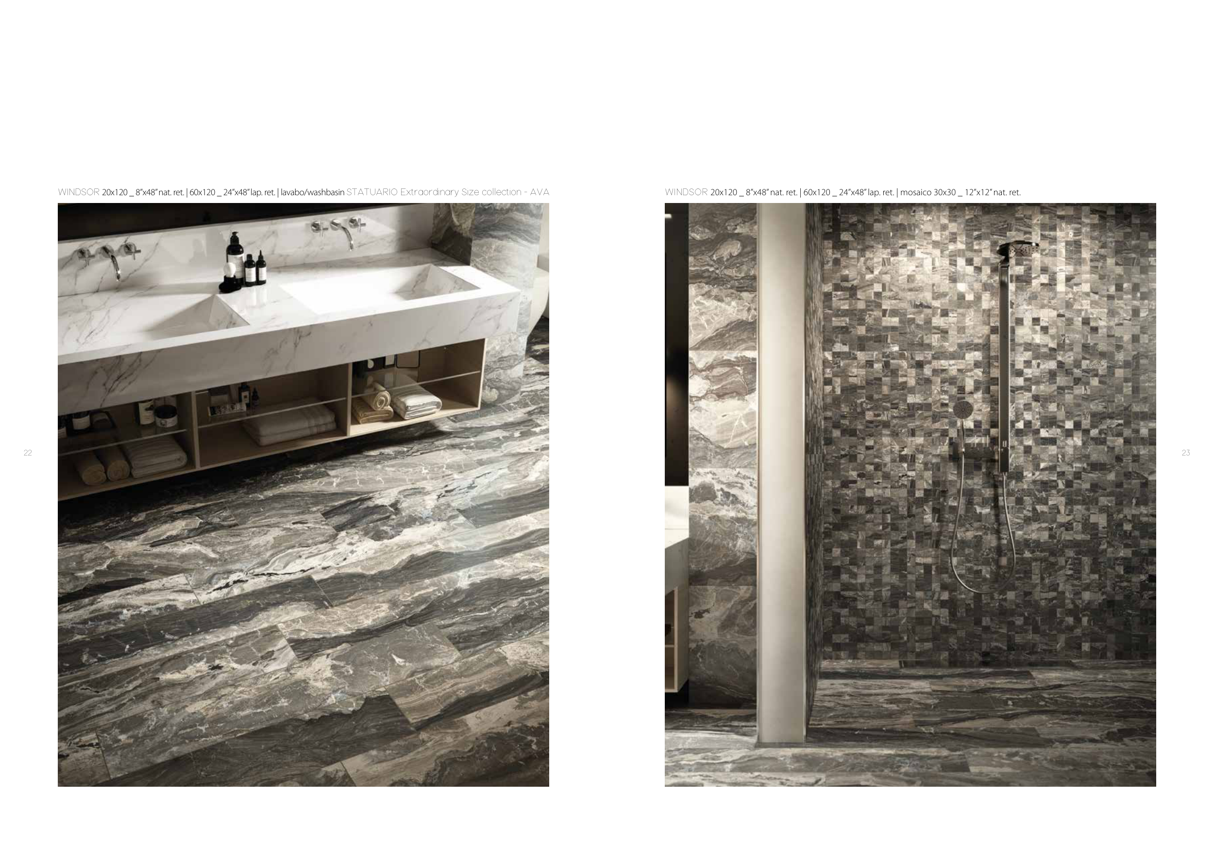 WINDSOR 20x120 _ 8”x48” nat. ret. | 60x120 _ 24”x48” lap. ret. | lavabo/washbasin STATUARIO Extraordinary Size collection - AVA