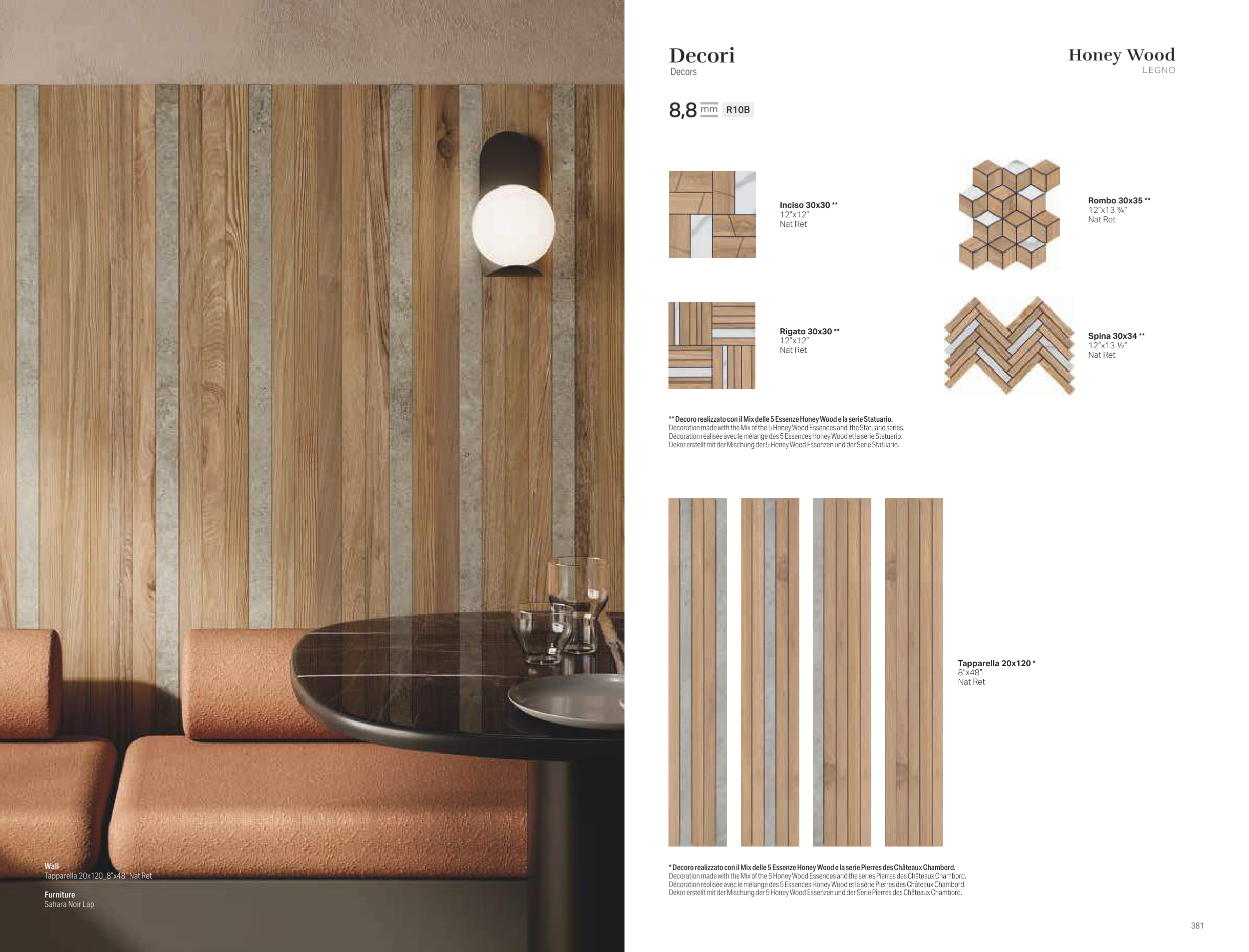 ** Decoro realizzato con il Mix delle 5 Essenze Honey Wood e la serie Statuario.