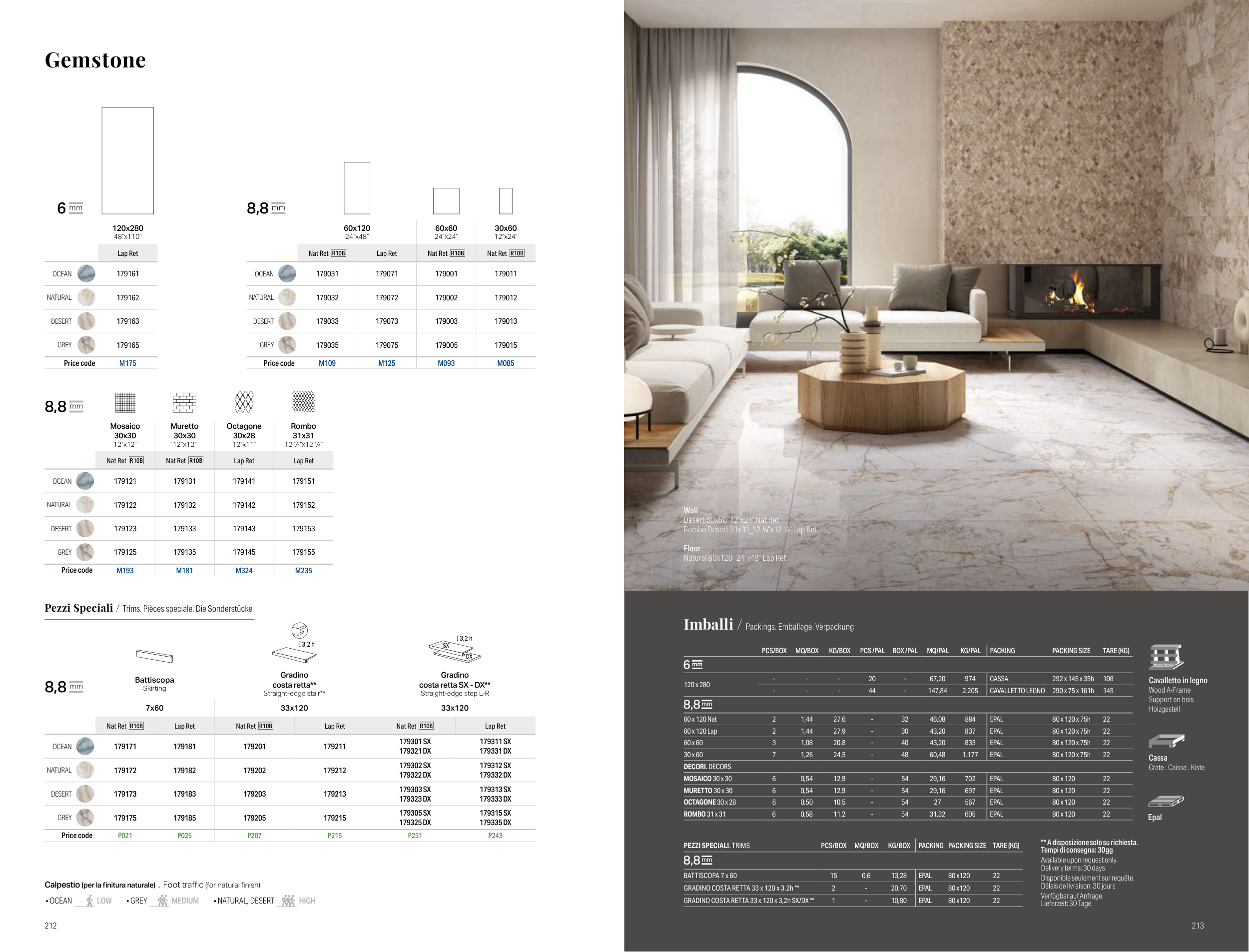 Calpestio (per la finitura naturale) . Foot traffic (for natural finish)