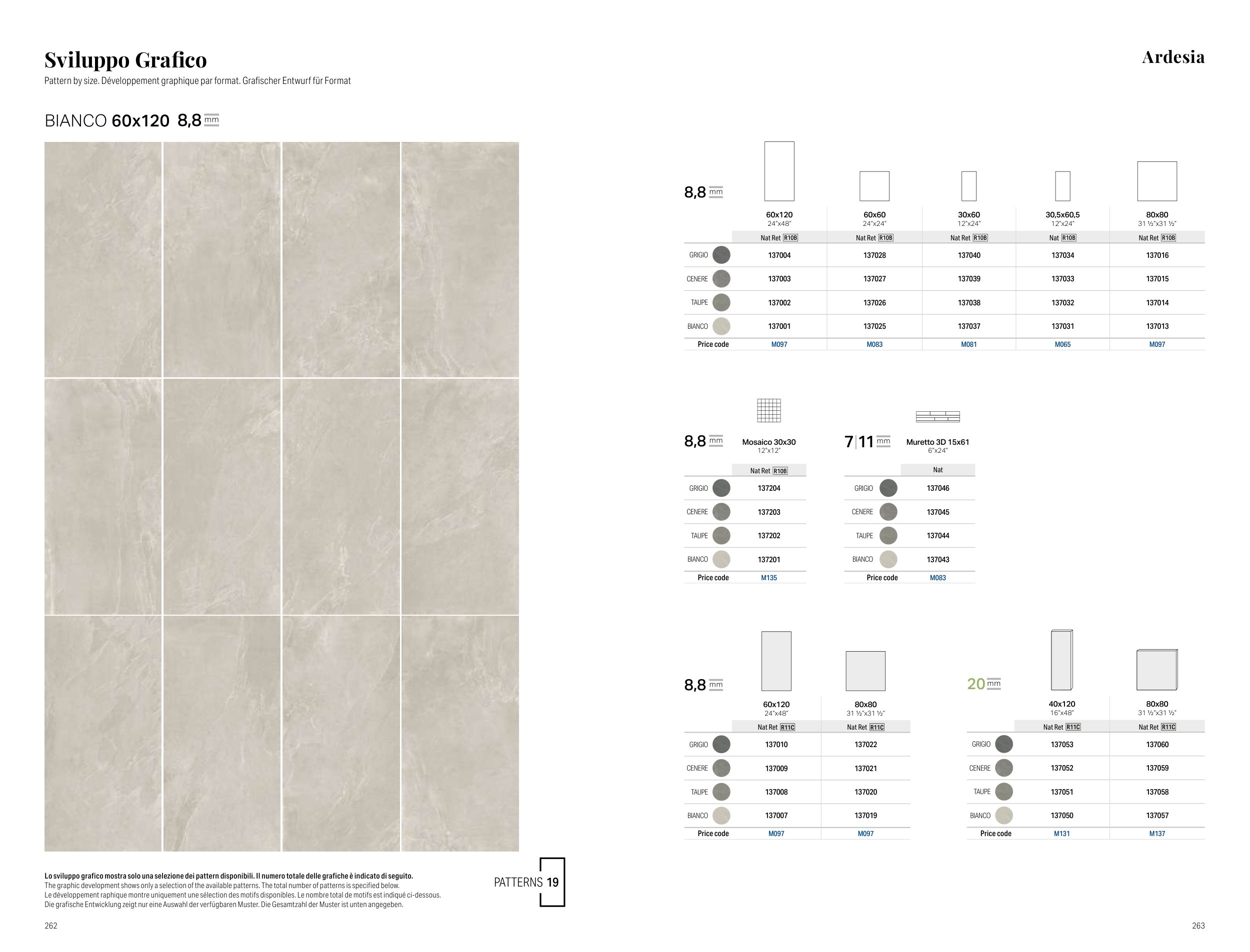 The graphic development shows only a selection of the available patterns. The total number of patterns is specified below.