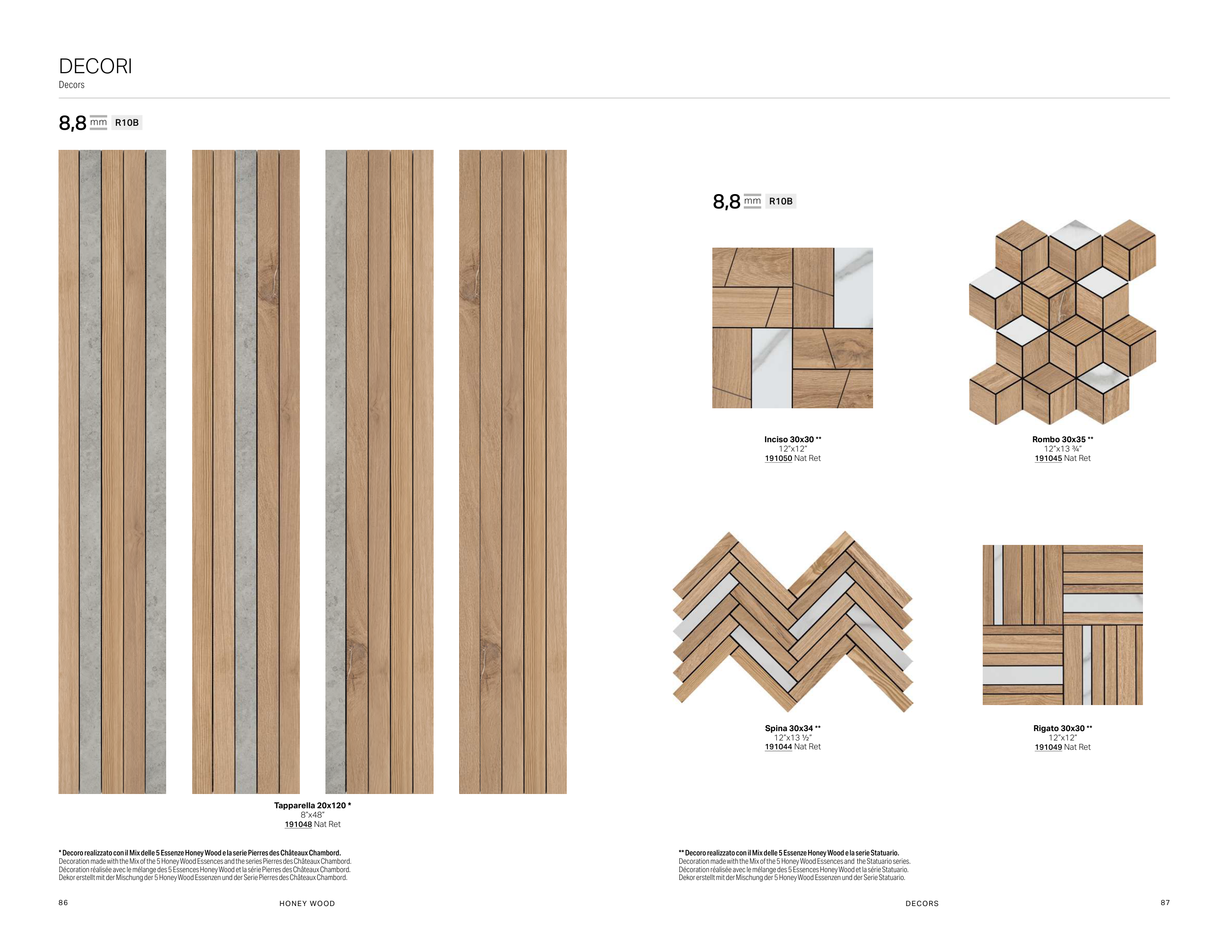 ** Decoro realizzato con il Mix delle 5 Essenze Honey Wood e la serie Statuario.