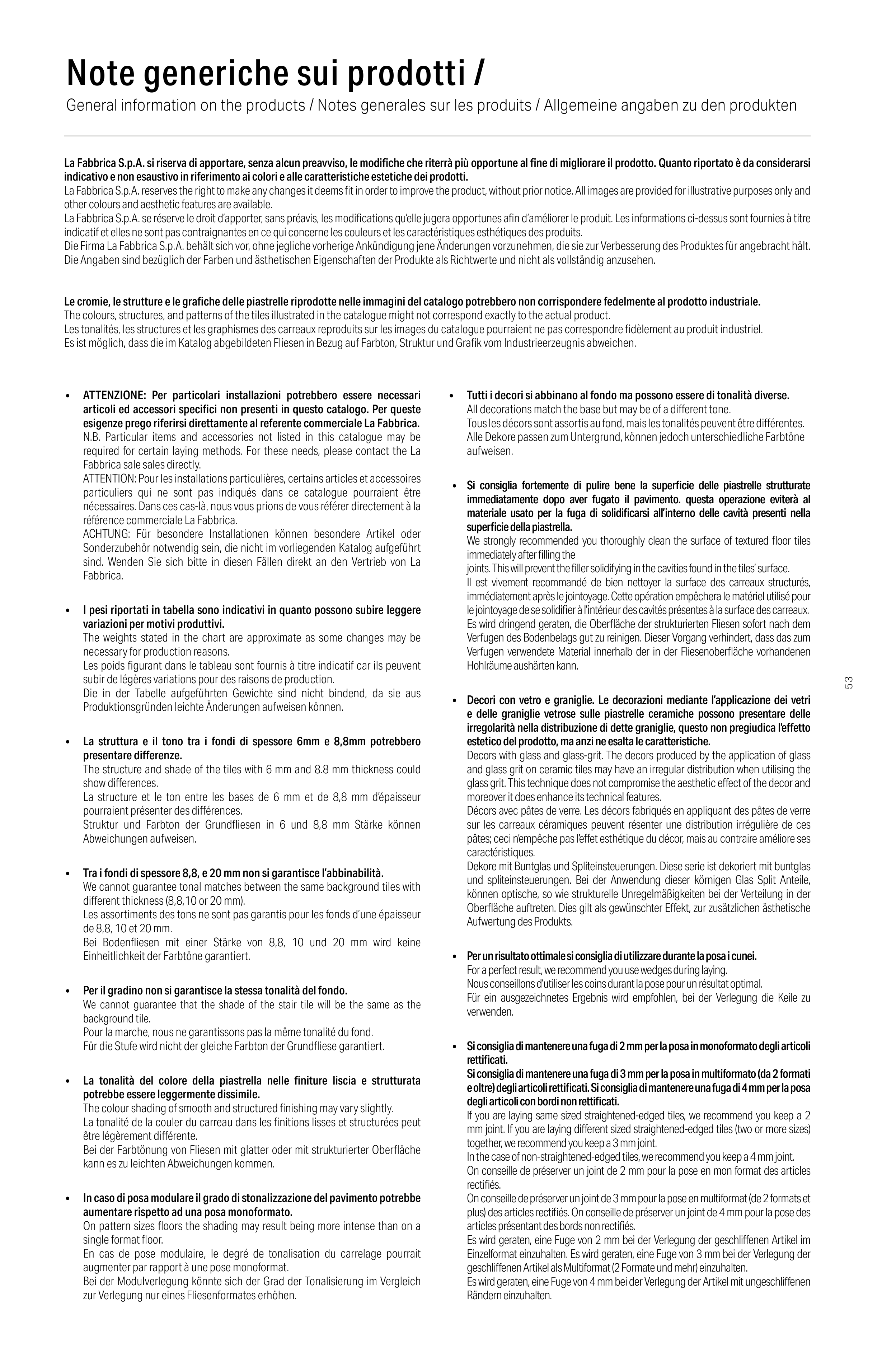 Es ist möglich, dass die im Katalog abgebildeten Fliesen in Bezug auf Farbton, Struktur und Grafik vom Industrieerzeugnis abweichen.