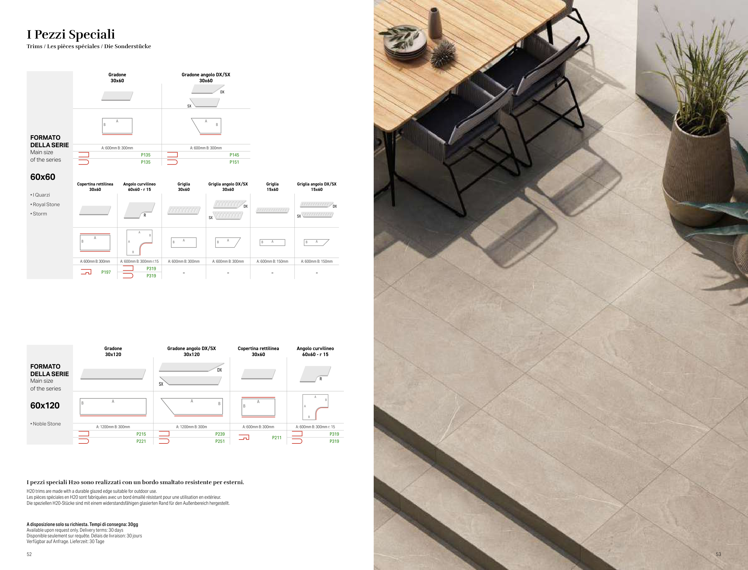 H20 trims are made with a durable glazed edge suitable for outdoor use.