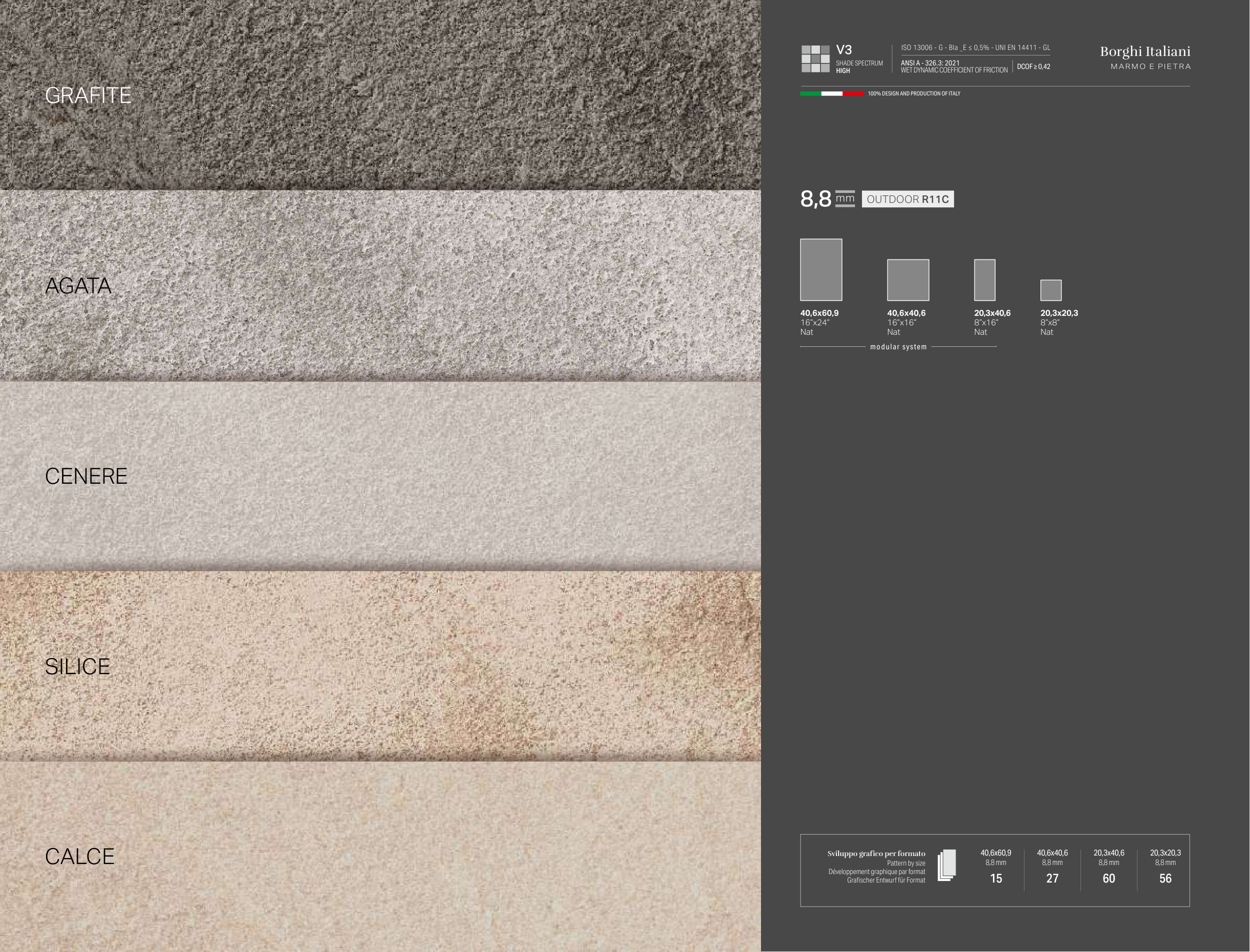 ISO 13006 - G - BIa _E ≤ 0,5% - UNI EN 14411 - GL