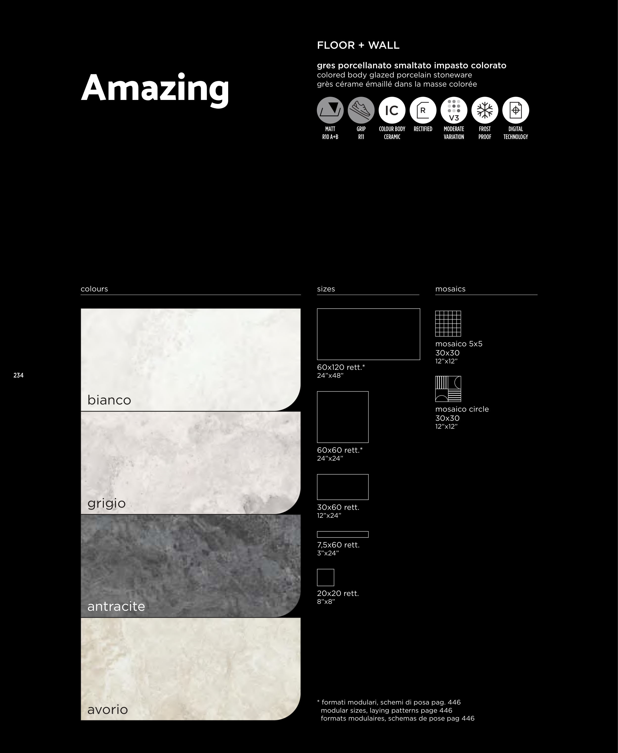 * formati modulari, schemi di posa pag. 446