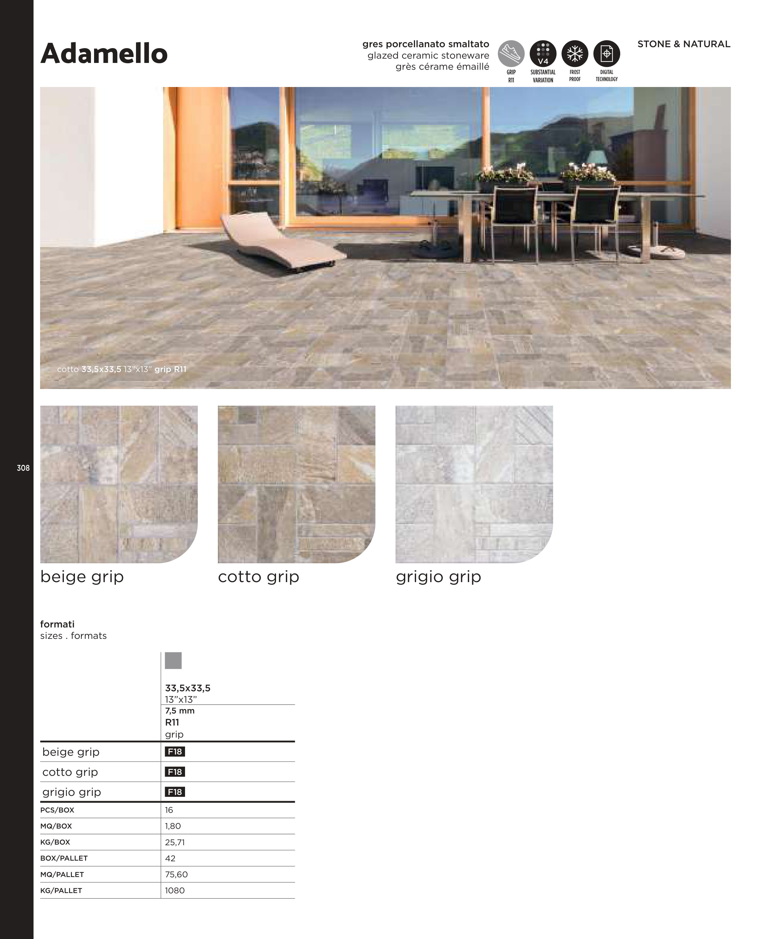 cotto 33,5x33,5 13”x13” grip R11