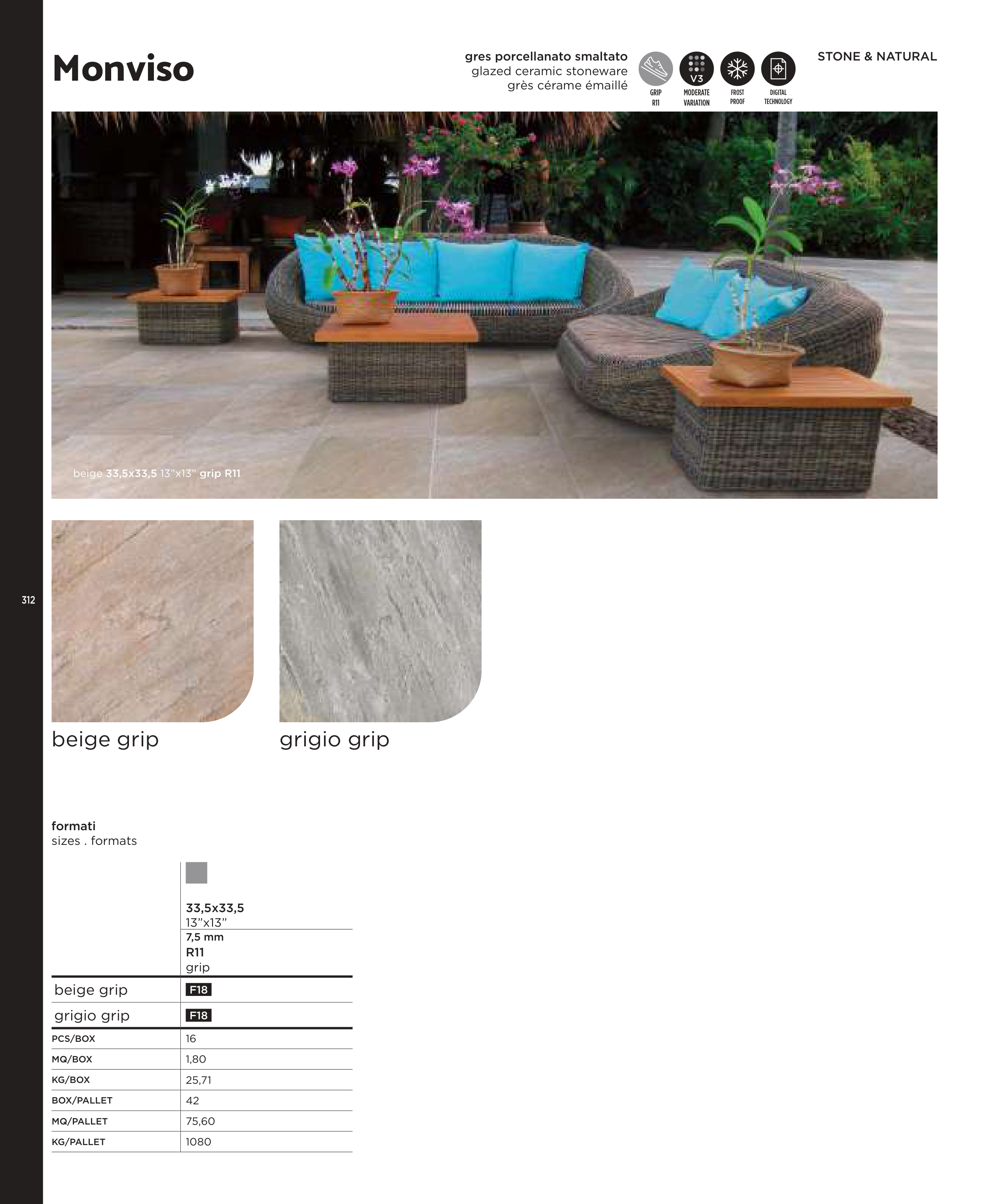 beige 33,5x33,5 13”x13” grip R11